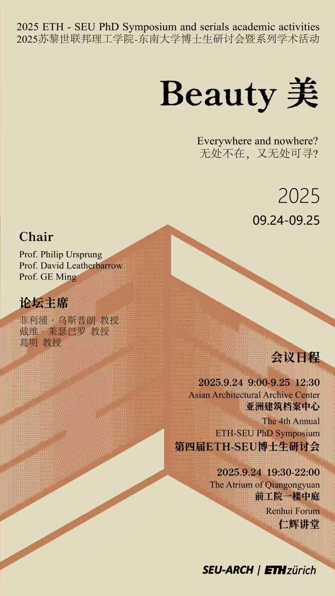 19:30 - 22:00 | 仁辉讲堂 Renhui Forum 主持 Moderator 戴维·莱瑟巴罗 教授 Prof. David Leatherbarrow 谁的美?建筑中的常规与形式 Whose Beauty is it? Norms and Forms in Architecture 菲利浦·乌斯普朗 教授 Prof. Philip Ursprung 片段 Fragments 埃丽莎贝塔·特拉尼·福斯特 教授 Prof. Elisabetta Terragni Forster |