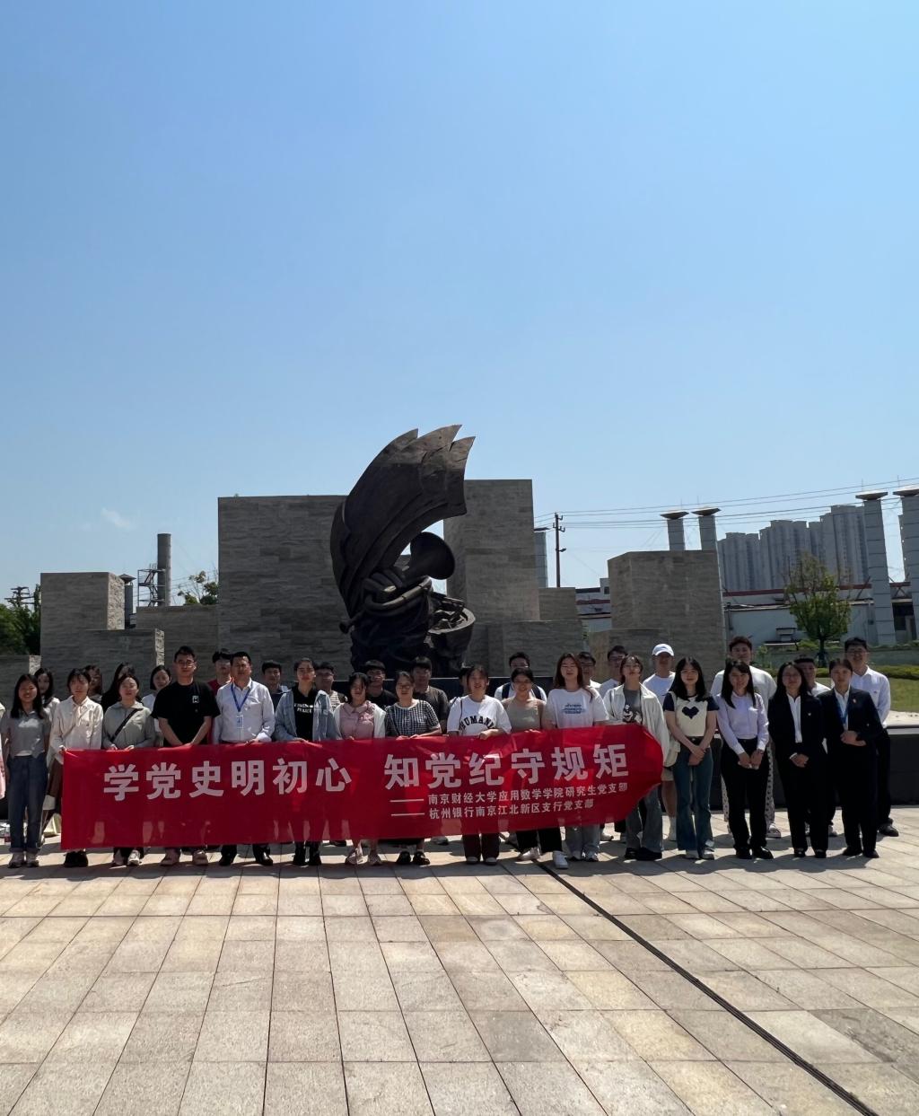 活动现场为深入贯彻落实党的二十大精神,加强党纪教育,提高党员党性修养,5月17日,香港赛马会赔率 研究生党支部联合杭州银行南京江北新区支行党支部开展“学党史明初心,知党纪守规矩”党史学习教育与党纪学习教育。首先,全体党员来到南京江北新区红色广场。讲解员...