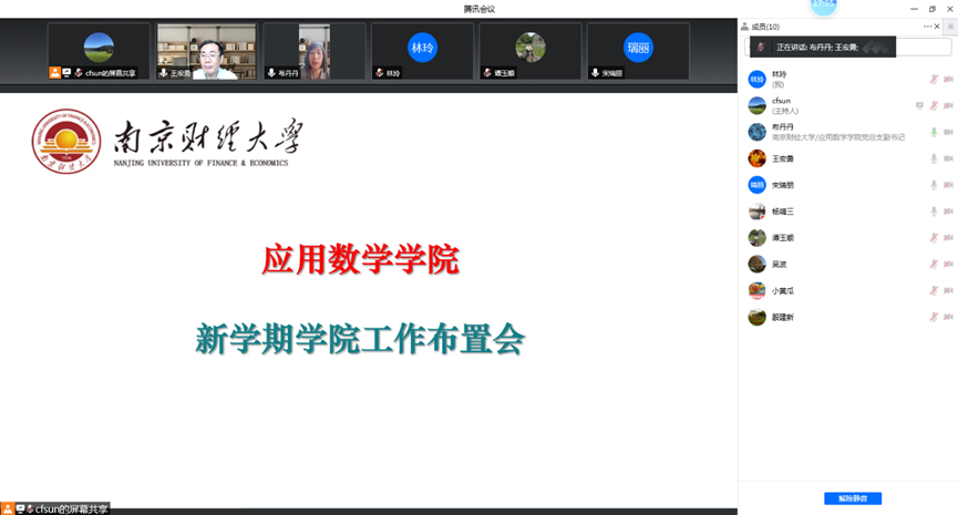 各分管领导依次汇报新学期分管工作。宋瑞丽副院长就本科专业建设、线上教学运行与质量督导、试卷与毕业论文检查、本科毕业论文抽检工作的进展情况等近期本科教学重点工作做出安排。布丹丹副书记汇报了本科生、研究生就业情况、新生入学教育、学生返校工作及辅导员工作分配等相关情况。孙成峰副院长就研究生招生就业工作、研究生导师师德师风建设、研究生教学课程建设以及硕士学位点建设情况做了汇报,明确了后期重点建设任务和努力的方向。