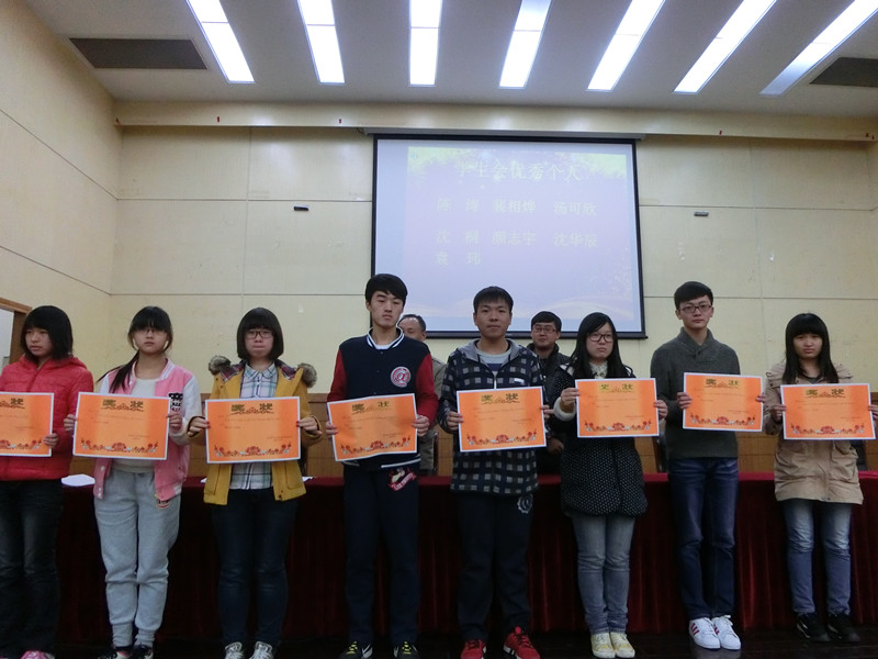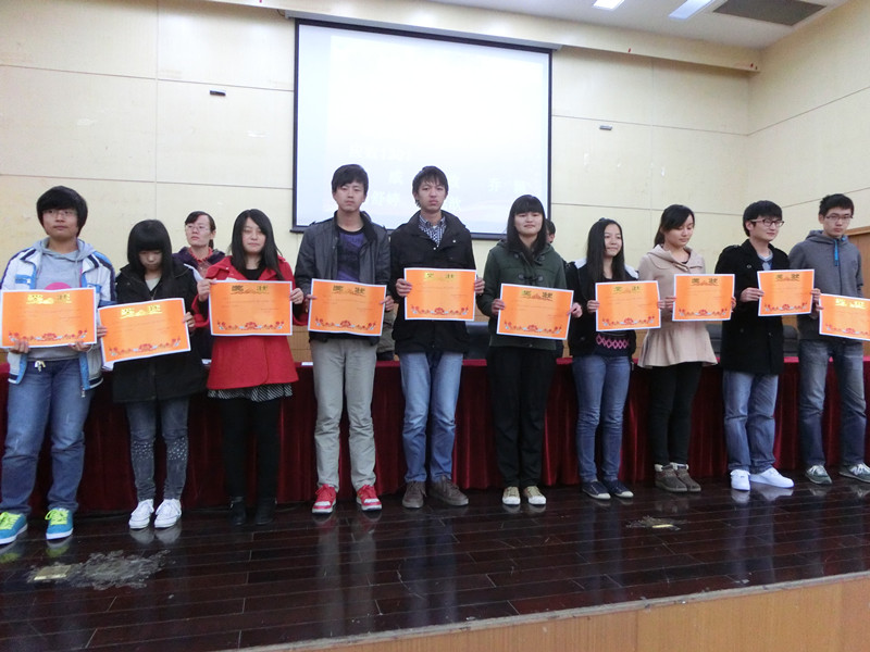 在颁奖的过程中,一些学生代表也上台谈了自己的一些经验和亲身感受。首先,国家奖学金获得者赵文杰同学发言,谈了自己如何获得奖学金的经历,大一时在校舞蹈团的学习生活让他学会了坚持不懈与团队合作精神,大四即将毕业,他会为梦想继续飞翔。在表彰“军训优秀个人代表”时,顾哲煜同学感谢了辅导员、学长学姐和教官的关心与教导,军训让我们增强了责任感和自信心,磨练了我们的意志,军训虽然已经过去,但它留给我们的品质会伴随我们书写无悔青春。随后,奖学金获得者贲佳雯同学发表了自己的获奖感言,让我们知道了在学好专业知识的同时还要学会待人接物的处事方式,要不断向周围的人学习来提升自己,并建议大一新生不能逃课而要抽空多读书。接着,先进班级代表王亚宁同学发言,他认为班级优秀的关键在于学习氛围要浓厚,希望大一能保持严肃认真的学习态度,不畏艰险,一飞冲天。然后,社会实践优秀个人代表陈航同学讲述了自己暑假在印度宣传亚青会的亲身历程,让大家对这样的经历产生了浓厚的兴趣,并增强了同学们的民族荣誉感和使命感。其次,运动会优秀个人代表张浩哲谈了自己对于个人天赋的理解,要善于发现自己的兴趣与特长。之后,团总支优秀代表孟幻表达了自己对团队中每一位队员的感谢,谈了参与各项工作的意义,希望团总支成员能继续积极配合为香港赛马会赔率