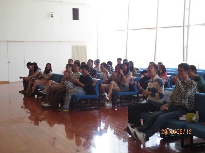 初赛阶段选手报名十分热烈,各院学生积极咨询并参与,对我们的活动给予了大力支持。5月10中午11时,活动工作人员便到现场提前进行布置工作。现场黑板的内容书写,参赛人员的签到及座位安排,并在比赛前进行了规则的介绍。现场答题时,工作人员进行监督并对作答的正确的选手现场分发精美U盘一个。5月12日下午1时,决赛正式展开。在比赛开始前,工作人员提前到现场进行了PPT,音响以及话筒等的调试,座位的安排,道具的摆放以及策划的分发与讲解。作为整场比赛的控制人员,我在开始前再次详细的对工作人员进行了分工以及各项准备工作。而比赛前,发现现场许多选手对于比赛规则并不熟悉,而在活动过程中主持人的讲解没有到位,导致有些选手不懂规则,使得游戏出现瑕疵。并且,由于游戏方式和话筒的限制,“谁是卧底”游戏环节没能在现场起到互动作用,除场上选手外,其他人员没能参与其中,而且给其过程中词语的选择不好,不便于游戏。这是我们前期策划考虑的不够周到。在之后的“你画我猜”以及“两人三足”环节中,现场出现了一系列的高潮,选手激烈的比拼,引得了现场的欢声笑语。在决赛环节中,现场观众出现骚乱,工作人员却没有及时制止,造成了现场的无秩序,并且由于选手并没有做充分的准备工作,决赛的规模性,精彩性没有达到期望的效果。不过,部分选手的激烈竞答仍赢得了现场的欢呼。