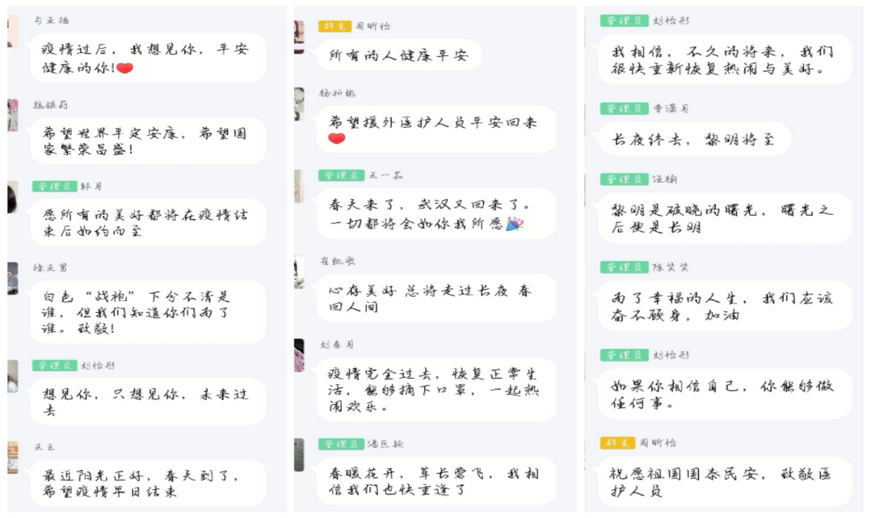 本次活动以防疫和南京红色文化为主,分为五部分。第一部分是向同学们介绍我国防疫的总工作和战疫成果;第二部分是介绍在疫情中涌现的战疫英雄和他们的英雄事迹,有深受人民敬佩的钟南山,也有南京当地社区的基层工作人员等等;第三部分是通过团支部对防疫工作的介绍,同学们进行了关于“自己的专业如何发挥抗疫作用”这一问题的探讨,他们积极思考此问题,纷纷表达了自己的想法,数学1801汤浩然同学说:“我们可以利用数学知识,精准地统计每日感染和新增患者的人数,并利用计算机绘制相关统计分析图,帮助人们更好地了解疫情。”金数1901班李章婷同学说:“我们现在大一,知识储备还不够,仍需要努力学习专业知识,但相信在未来,我们便可以建立数据模型,分析、预测疫情的发展状况。”最后,同学们对武汉、对湖北、对中国送上了最真诚的祝愿:大家相信中国定能战胜新冠肺炎病毒。愿所有的羁绊,转瞬即逝!