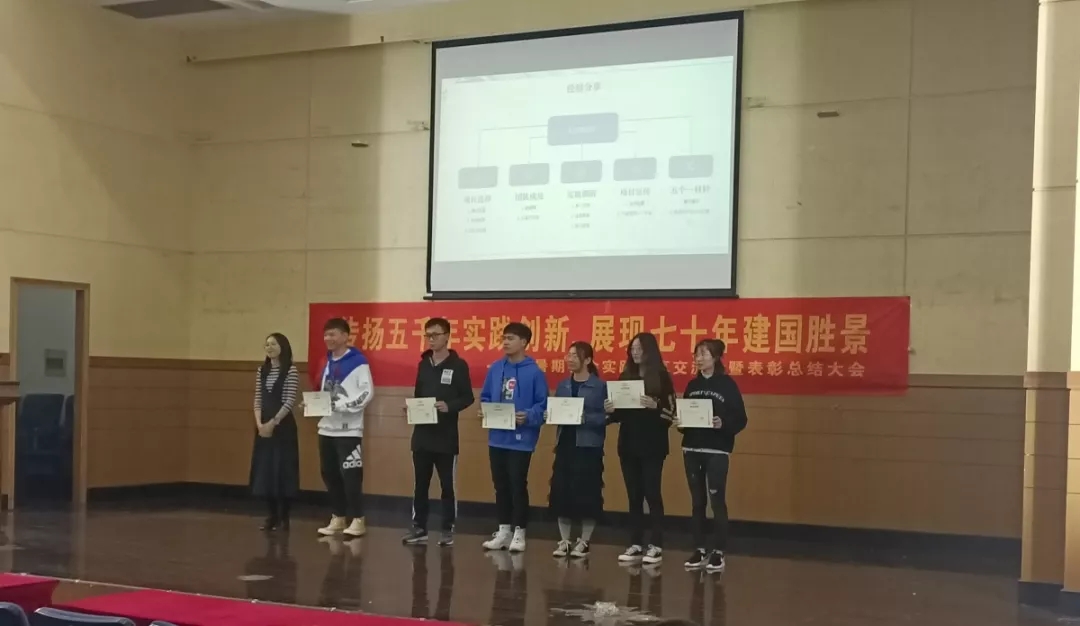 “助力电商小分队”六个团队的代表依次上台进行活动总结和经验分享。各个团队虽然实践方向和侧重点不同,但是团队代表们讲述他们从一开始组队寻找指导老师到中期克服实践困难再到最后活动圆满结束的经历却出奇的一致,这就提醒同学们要做好暑期社会实践活动是需要付出很多努力的。其中“爱洒梧童”团队代表高宸同学的一句“以爱之名,我愿意”,更是将暑期支教的意义诠释的淋漓尽致!会议最后,由分团委副书记黄冰倩为优秀团队颁发奖状,以示鼓励。