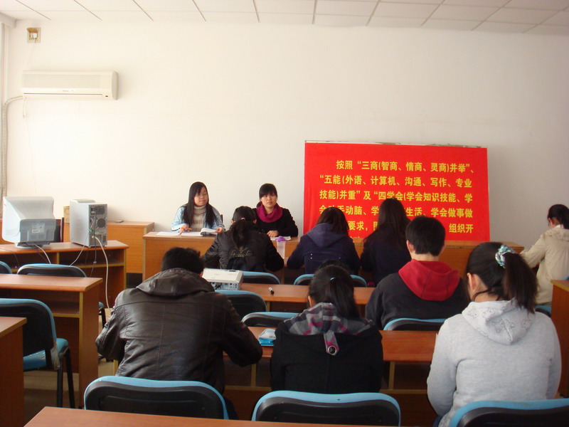 会议分三项议程。首先由本科生党员宣读了个人“创先争优”公开承诺书。大家都表示会在以后的学习、生活中起到模范带头作用。然后,龚莉红老师做了总结发言。她指出党员同学应按自己的承诺,切实履行,在实际行动中证明自己。