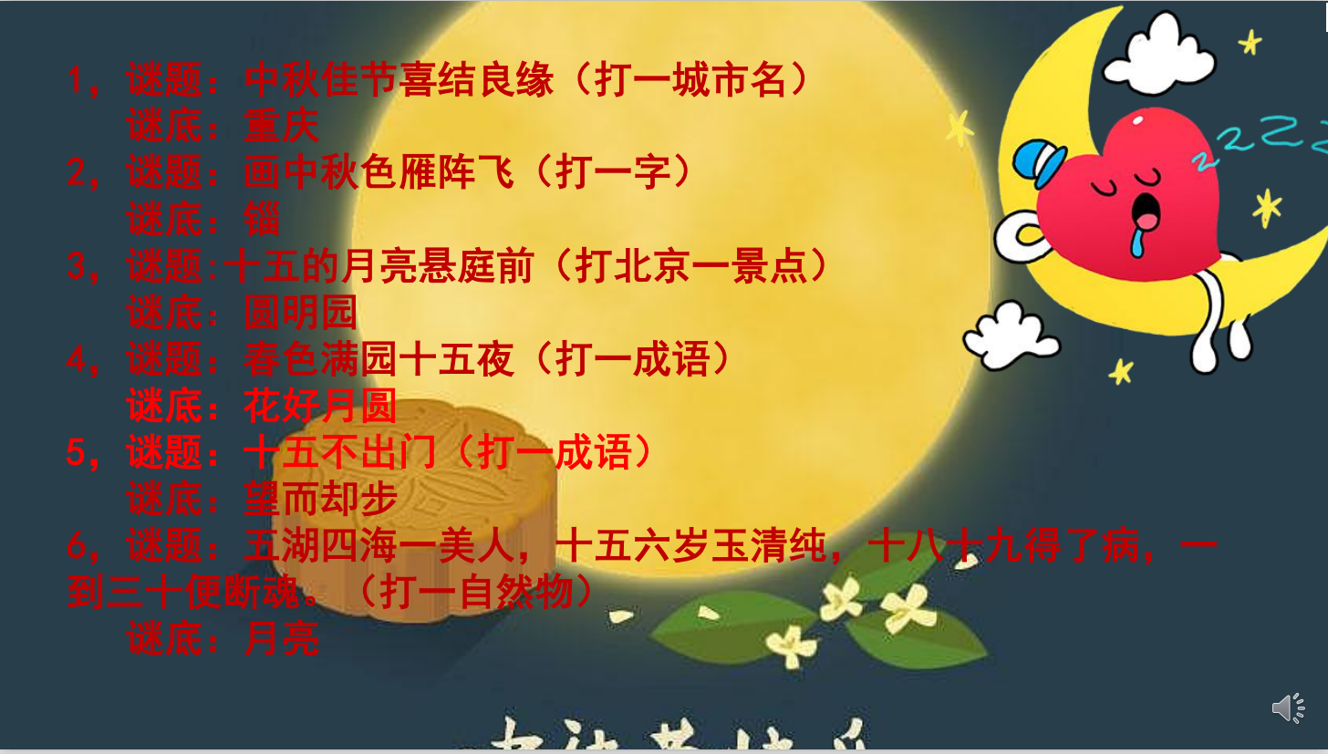 开展了以“中秋意满满,真情谜中知” 为主题的欢度中秋猜谜语送祝福线上活动。