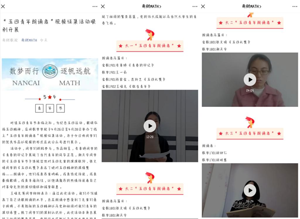 于4月26日至4月28日举办了线上“五四青年朗诵者”视频征集活动,并于5月1日将同学们的优秀作品以视频的形式在香港赛马会赔率