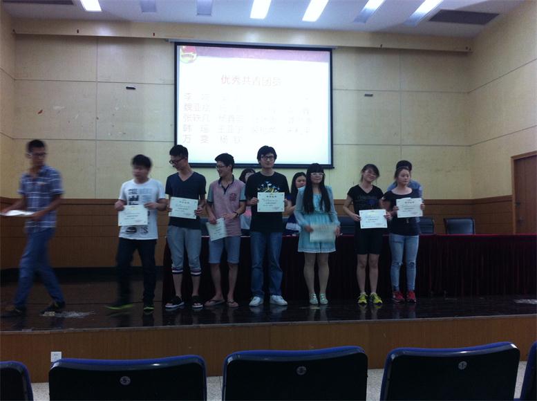宣读完表彰决定后,由团总支书记龚莉红、辅导员李迅和刘喜鹏老师向获奖的同学颁奖并予以鼓励。