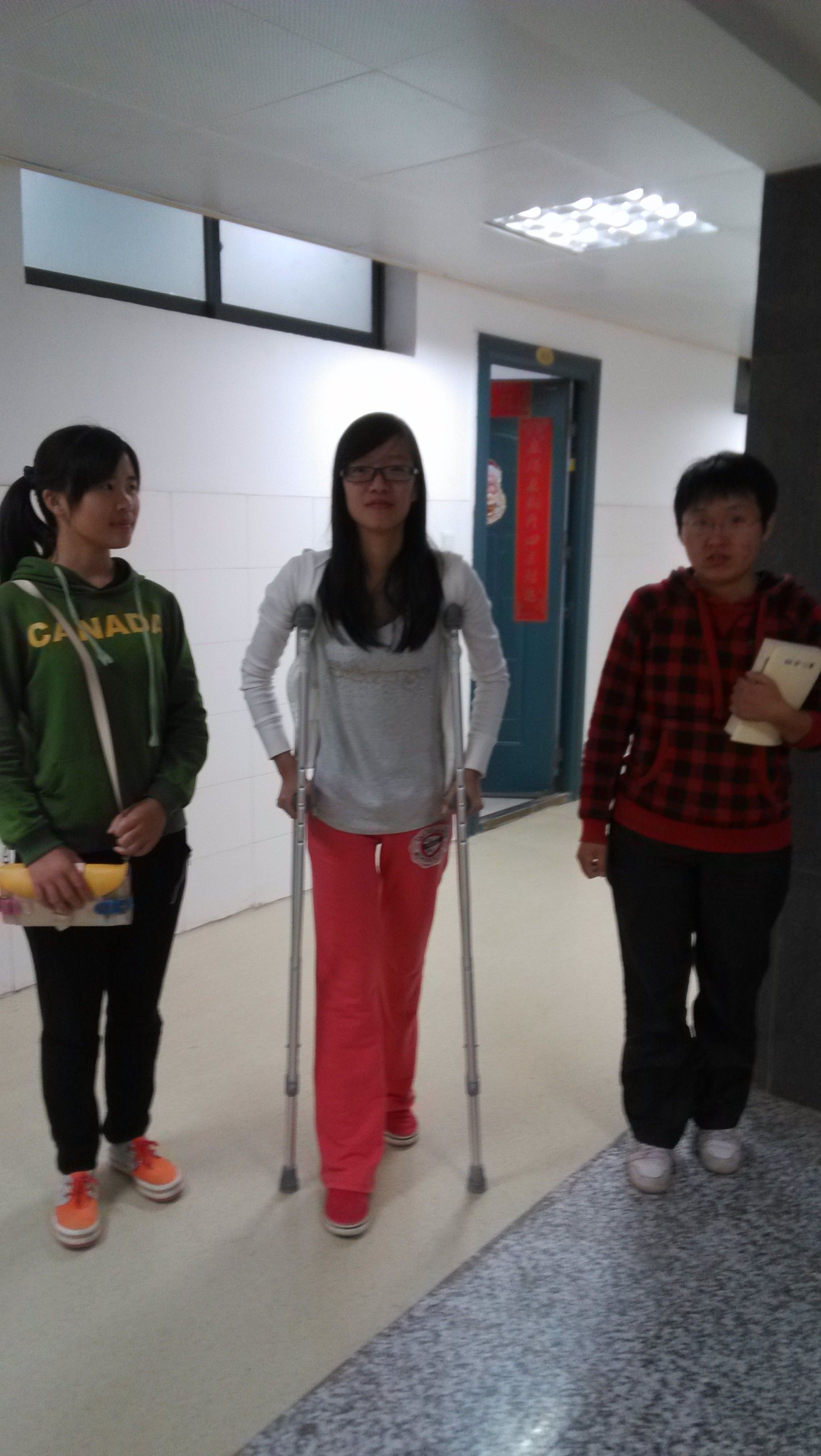 到医院路上感觉时间好长,总也不到似的,我的腿伤需要保持固定不动的状态,同行的同学们不光扶着我,按着腿,还不停和我聊天,分散我的注意力。路好长,但我有幸有这么多好伙伴一路相陪。”