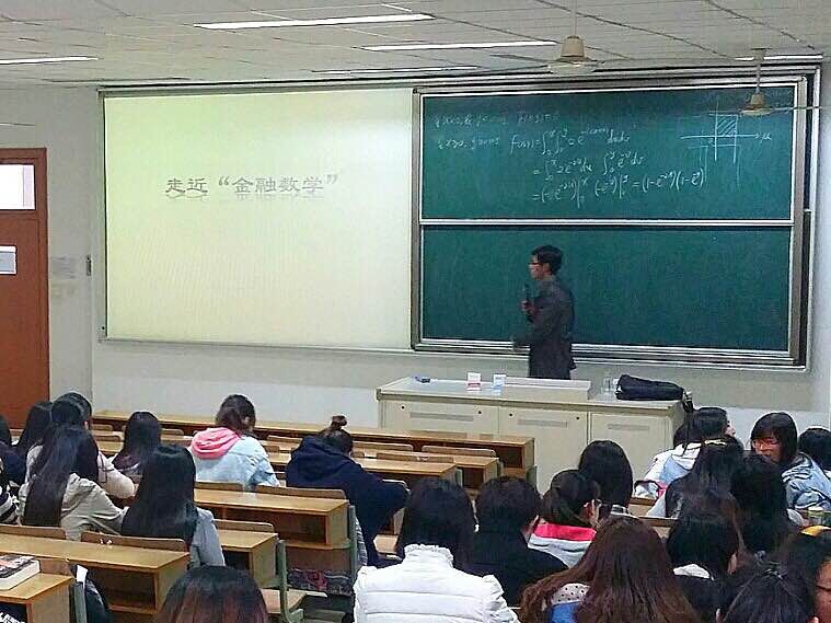大一大二的学生参加了此次讲座。 黄顺林副教授首先介绍了金融数学的起源以及发展过程,通过生动的事例讲述了金融数学发展中的两次重大变革,以及一些重要模型,例如马克维茨的资产组合理论与布莱克和斯科尔斯的期权定价方程。随后,黄顺林副教授结合具体例子介绍了金融数学中常见的数学理论和方法,主要包括运用随机分析、随机控制、数学规划、微分对策、非线性分析、数理统计、泛函分析、鞍理论、倒向随机微分方程、分形几何等现代数学工具。最后,黄顺林副教授介绍了金融数学的发展方向和金融数学专业的就业前景。此次讲座使同学们受益匪浅,为同学们的专业方向指明了方向。使同学们了解了金融数学在各领域未来的发展前景,同学们也更深刻地认识到各种金融经济学模型在现代金融数学领域中的重要地位。