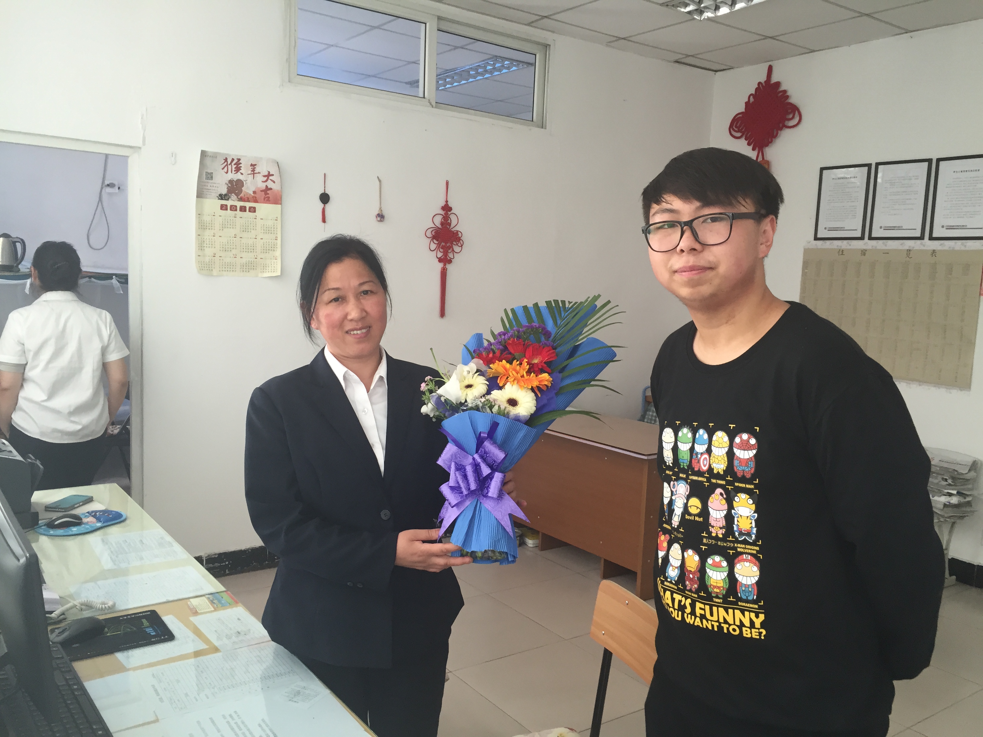 同学们在宿管站进行义务劳动,擦洗玻璃、清扫地面、捡拾固体垃圾。在劳动的过程中,同学们热情饱满、积极努力,展现出了朝气蓬勃、精神抖擞的良好状态。劳动过后,在窗明几净的宿管站,同学们手捧鲜花,向在节日期间和工作在一线的宿管阿姨送上五一劳动节的祝福,感谢她们平日里为宿舍管理做出的无私奉献,祝愿她们工作顺利、身体健康。随后,香港赛马会赔率