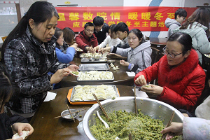 相关负责人、老师和2017级全体新生一起体验包饺子,共话传统文化,欢乐过冬至。