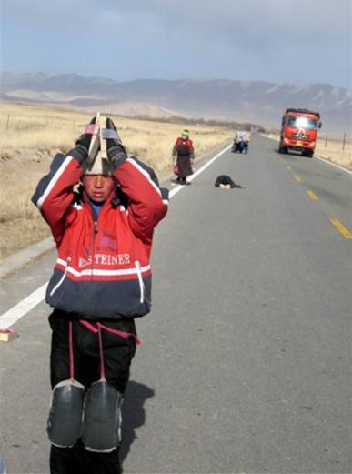 第六、七天,骑行队决定从青海湖一路骑行至塔尔寺,在路上队员们看到有一家虔诚的藏传佛教信徒沿路顶礼膜拜,队员们下车询问才知道,他们一家每隔三年便会举家沿青海湖顶礼膜拜,从居住地沿青海湖至塔尔寺,一路要做10万次五体投地的顶礼膜拜,做不完,来年继续。而以身体健壮者计,这一路的行程得三个多月,年长者时间就更长。可想而知,这一虔诚之举要付出多少艰辛和困苦。队员们不禁惊奇和赞叹信仰与精神的力量如此巨大!