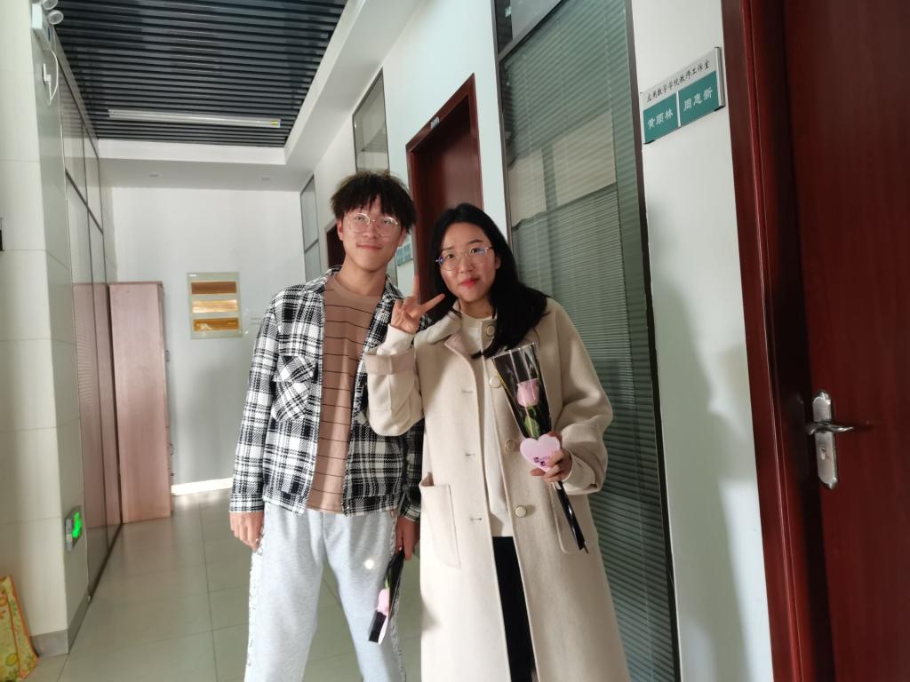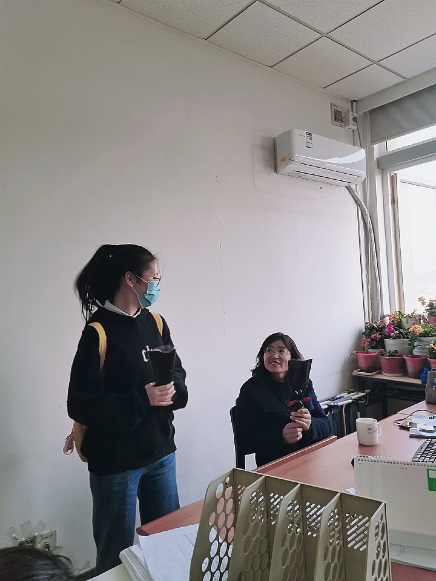 娇艳欲滴的玫瑰花被一层轻薄的白纱小心翼翼地包裹着,一圈红黄相间的细丝带系于下端。花束虽然小巧,却别致精美,这是同学们为老师们细心装扮的“一朵朵鲜花”。和鲜花在一起的还有一张张饱含着学生心意的粉红色贺卡,象征着同学对老师们的最纯粹、最美好的祝愿。当同学们将一朵朵准备好的的玫瑰花送到每位女老师手中时,老师们的脸上纷纷绽开了欣慰的笑容,她们有的亲切地拥抱了献花的同学,有的和同学们深切攀谈,有的和同学们合影留念…盛开的鲜花和灿烂的笑脸交相辉映,这是同学们认为的老师们最美的样子。