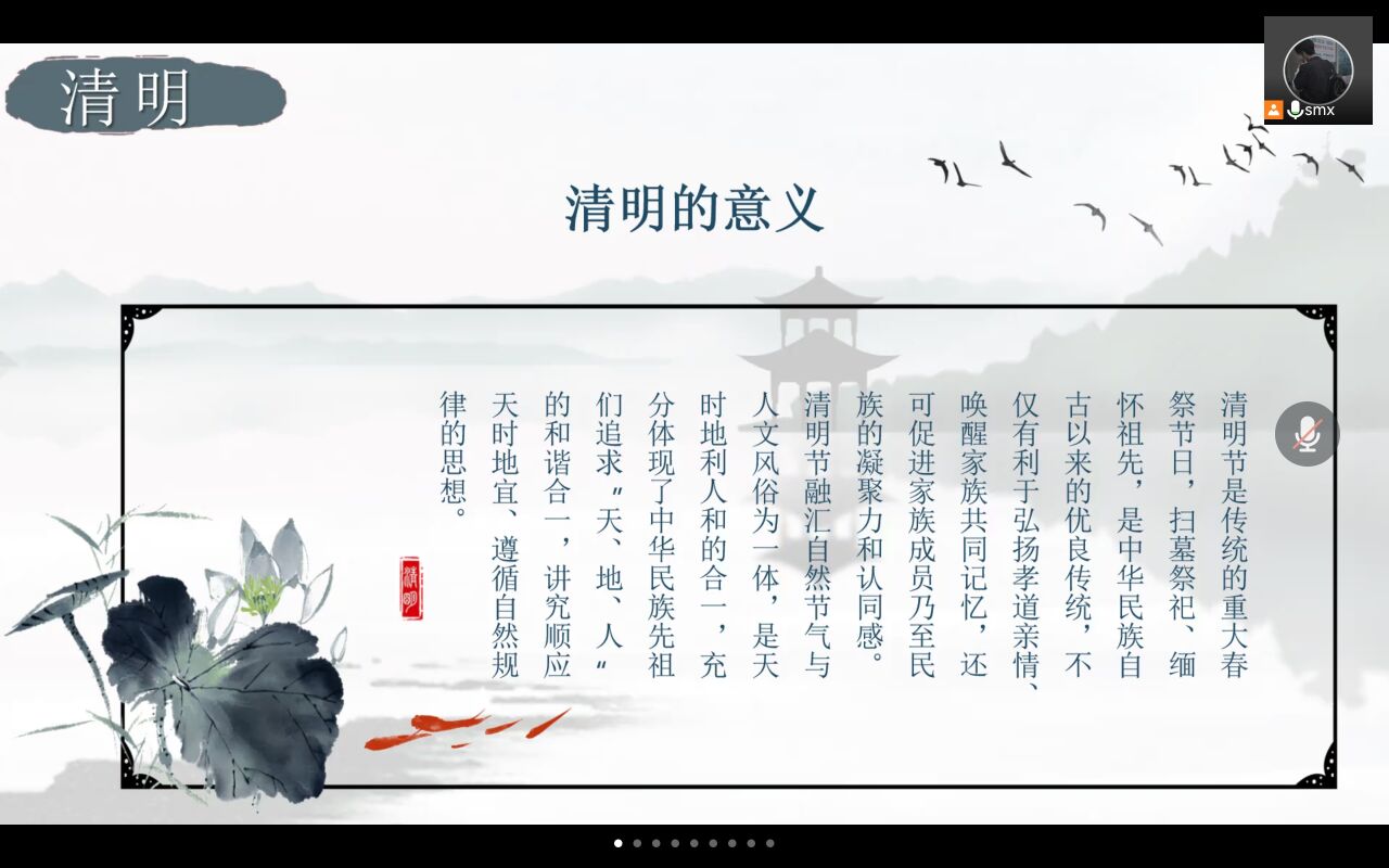 云端开展主题为“清明时节忆先烈,诵读经典感恩情”朗诵经典、缅怀先烈活动。