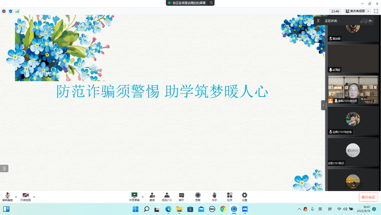在线上举办了以“防范诈骗须警惕,助学筑梦暖人心”为主题的活动。21级学生、22级全体新生参与活动。