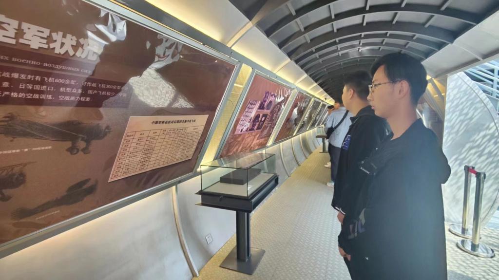 随后,大家来到南京抗日航空烈士纪念馆参观学习。纪念馆分别由“奋勇抗敌”“国际援华”“壮志凌云”和“缅怀先烈”四个主题展厅以及部分室外实物展品组成。篇篇报道,行行笔墨,记载着先烈们的英雄事迹,如今读来,仍旧振奋人心;件件英烈遗物,唤起同学们爱国之心;段段影视资料里,人们对和平之音的期盼依旧触动心弦。