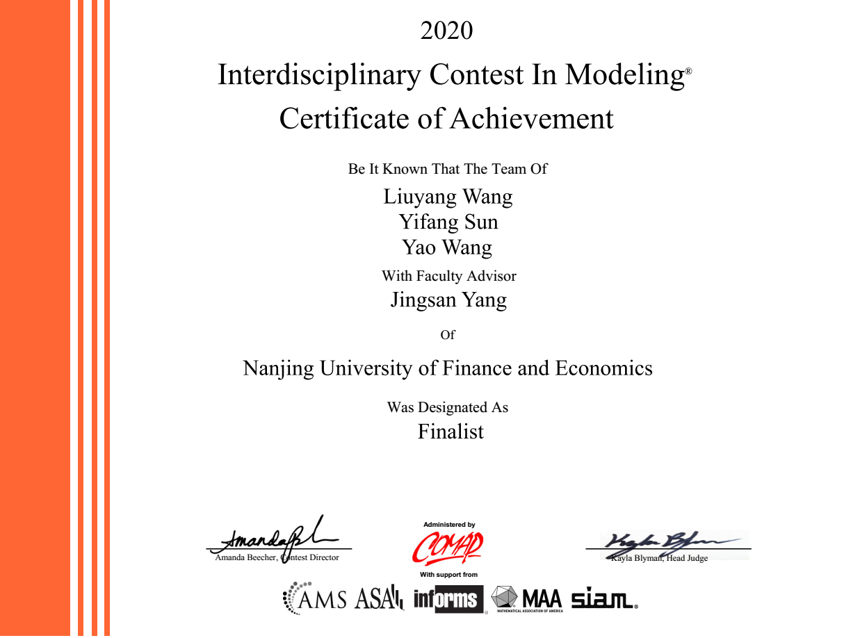 香港赛马会赔率 学子在2020年美国大学生数学建模竞赛中获优异成绩