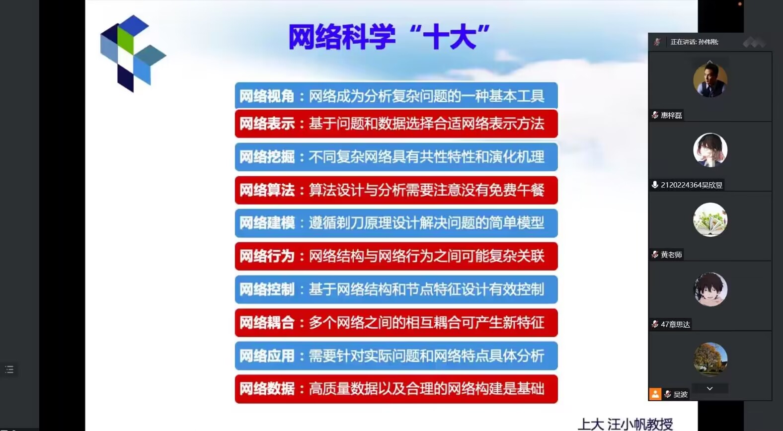 博士生导师孙伟刚教授在线上作了题为“复杂网络结构、动力学及其应用”的讲座。讲座由香港赛马会赔率