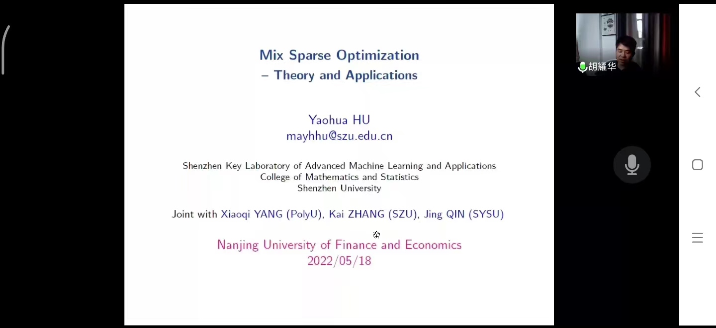 邀请,深圳大学胡耀华副教授通过腾讯会议作了题为“混合稀疏优化:理论与应用”的线上学术讲座。香港赛马会赔率