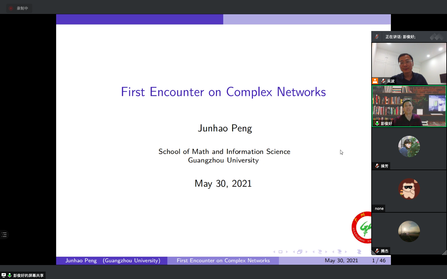 彭俊好教授线上讲座实况