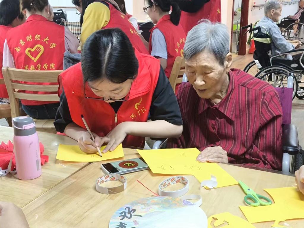 志愿者与老人们一起开展了拼图和折纸活动,共同制作红色手工艺品,现场氛围热烈而温馨。志愿者们耐心地与老人们互动交流,每一件作品都凝聚着大家的用心和深情。最后,志愿者和老人们一同唱响红色歌曲,在悠扬的歌声中本次活动圆满结束。