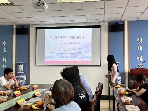 研究生党支部代表张文娟同学作“民族团结手牵手,和谐发展心连心”主题宣讲。她详细介绍了党的民族政策及相关法律法规,使大家深刻认识到学习党的民族政策的重要性和必要性,明白巩固和发展平等、团结、互助、和谐的社会主义民族关系是一项长期的任务,也是一项涉及经济、政治、社会等各个领域的系统工程。大家必须要统一思想,像石榴籽一样紧紧拥抱在一起,同心同德、守望相助,同心协力共建美好家园。
