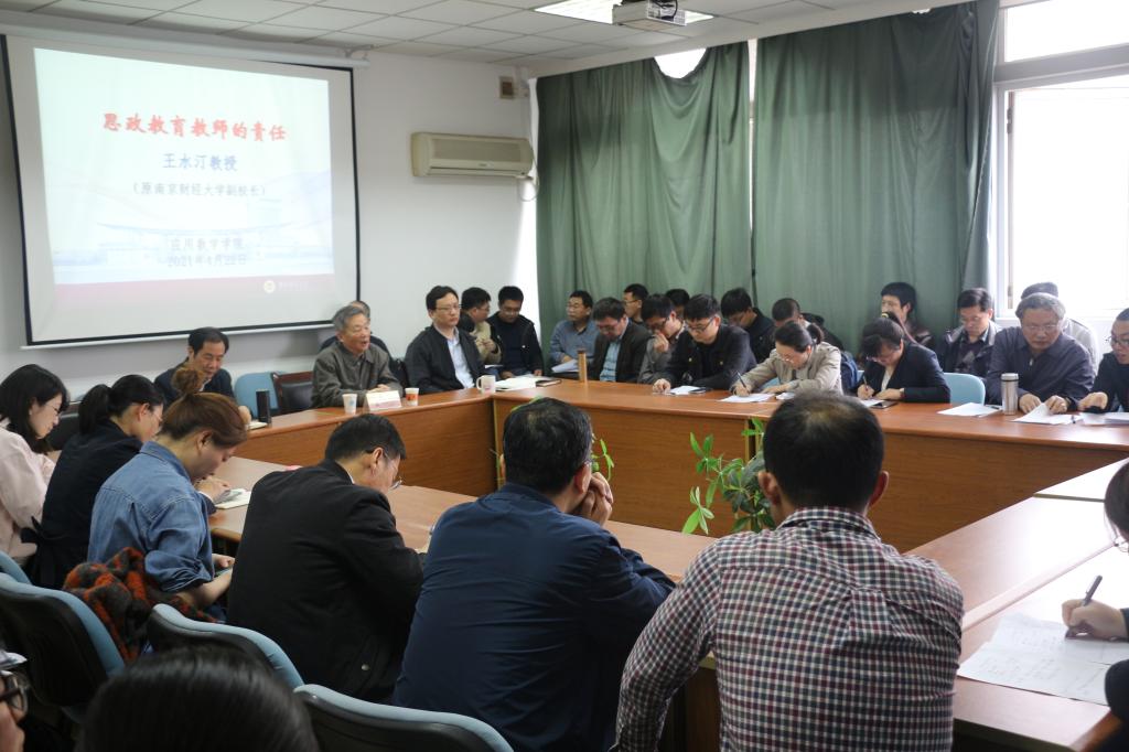 王水汀教授结合个人从教经历,讲述了思政教育的重要意义和高校教师课程思政育人的责任。他指出,高校教师要树立课程思政育人理念,深刻认识到每一门课程都有育人功能,要充分利用课堂教学,有机融入课程思政元素,主动承担起育人责任,这是教书育人的题中之义,作为教师责无旁贷。他认为,身教重于言教,学为人师、行为示范,教师是一个良心活儿,只有人品好、方法好、学问好,用自身知识、阅历、智慧和行为举止感染学生,将价值观引导置于知识传授和能力培养中,方能扛起立德树人的重任。王教授还结合个人教学经验分享了如何在课程中融入思政元素,通过追溯若干哲学家、数学家、科学家等研究问题的过程,介绍科学精神、思想与方法;依托数学规律的得出、逻辑能力的培养,将科学的态度、锲而不舍的精神以及爱国情怀传递给学生。
