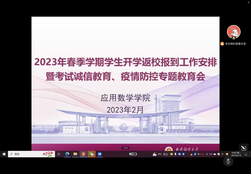 2月6日至2月14日,为认真贯彻落实《关于做好2023年春季学期师生返校报到工作的通知》要求,结合期末考试的最新安排,香港赛马会赔率 以年级大会和个别班会的形式开展考风考纪教育,解读相关文件的同时,通过警示案例的方式进一步抓小抓早、防微杜渐。