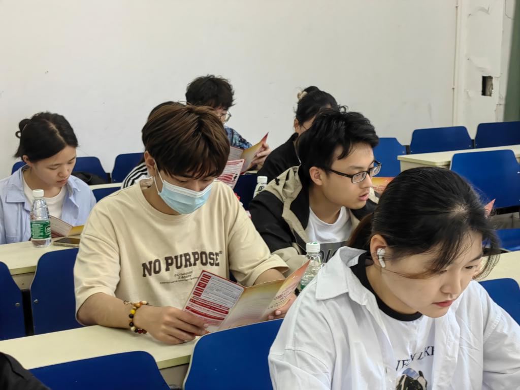 研究生作为各班“法治小顾问”通过领学相关法律法规,引导同学们认识到注重法治教育可以帮助大学生养成依法守法的思想和行为习惯,提高对法律、对正义的感知能力和理解能力,从而使其积极融入社会、为国家和人民做出贡献。通过案例解析详细介绍了法律的适用、法律责任及赔偿等方面的信息,让同学们深刻感受到法律知识在生活中的实际应用。