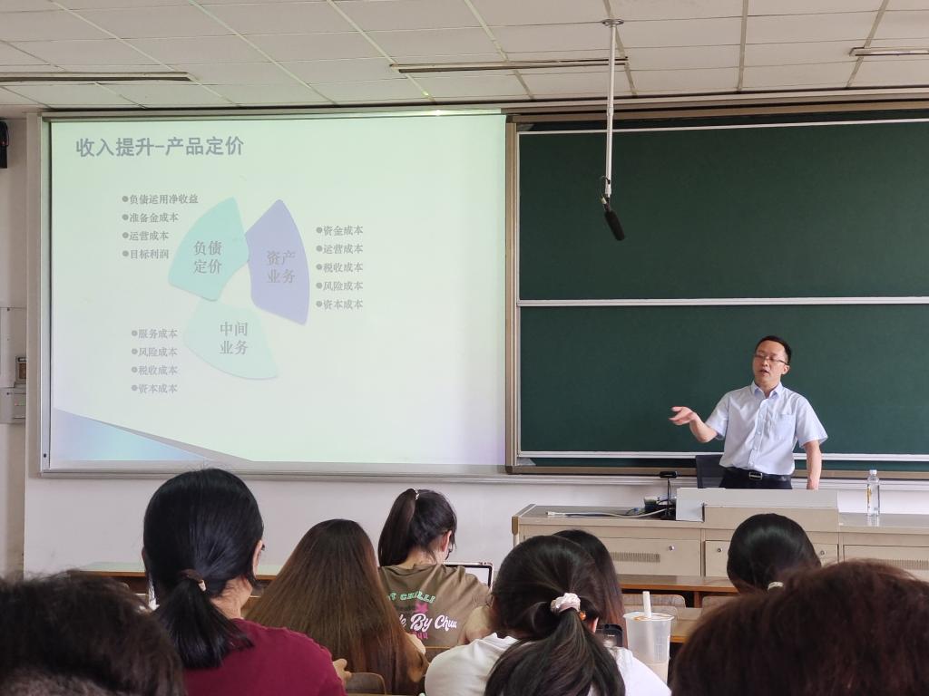 讲座中,钟经理通过带领同学们认识资产负债表,让同学们了解了银行的经营活动主要包括:存款、贷款、同业投资、债券投资、票据业务、衍生业务。其中,不论哪类业务,风险和收益都贯穿始终。接着,钟经理列举和同学们生活息息相关的例子,介绍了金融市场存在的风险和控制风险的方法,帮助同学们进一步了解银行信用体系的搭建过程。商业银行内部资金转移都是按照一定规则与业务单位进行的,具有一定的信用风险,因此,诚信意识在金融市场中是不可或缺的。所以,同学们从现在开始就要注重诚信建设,诚实做人,诚信做事。最后,钟经理分享了自己的学习、工作经历,从行业需求出发,阐明了金融市场和数学学科的密切联系,鼓励同学们认真学习专业知识,将理论与实践相结合,不断明晰未来规划。