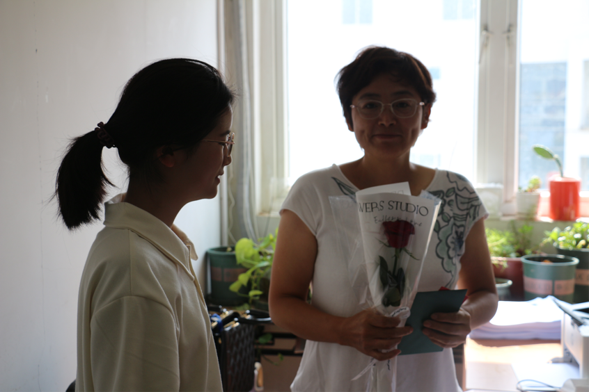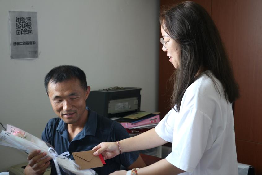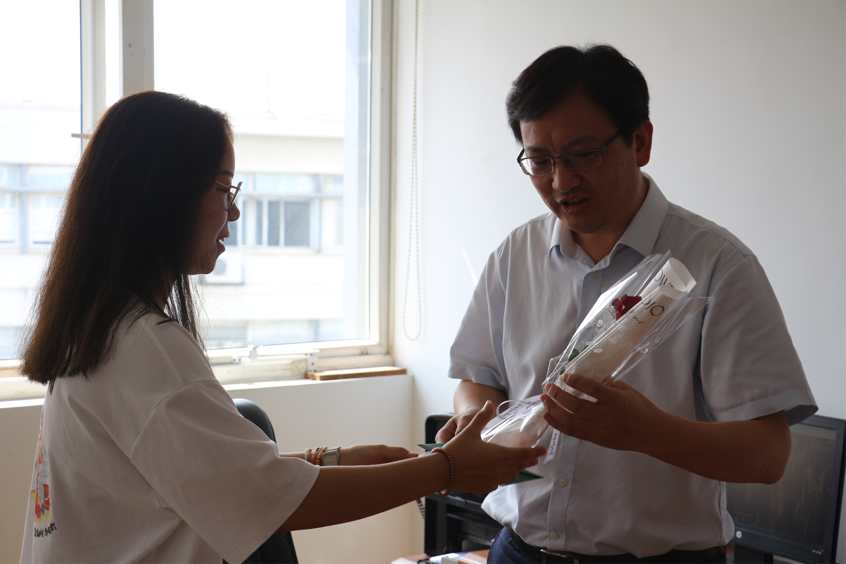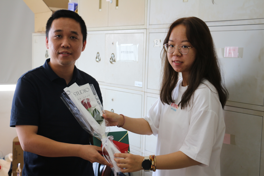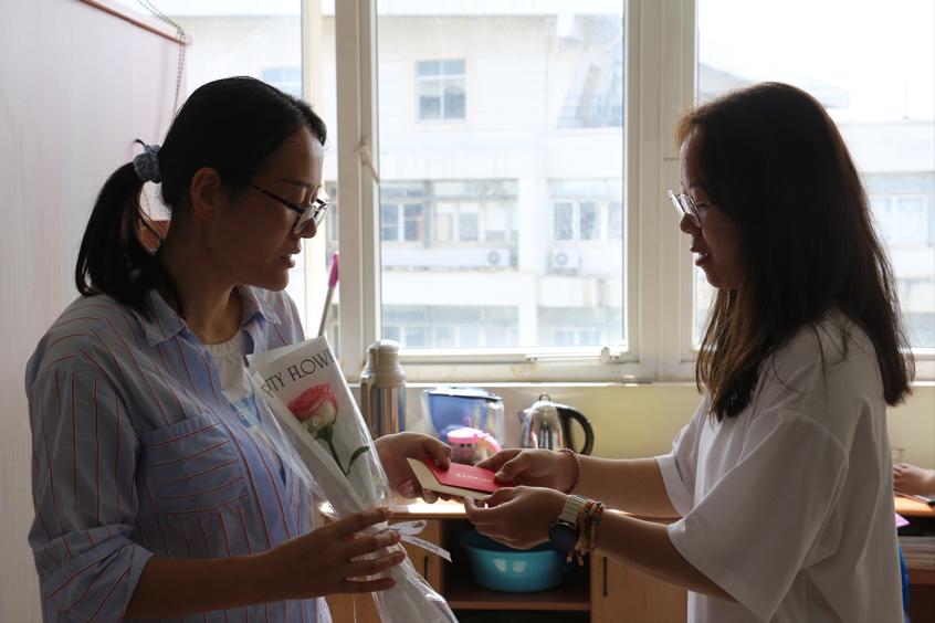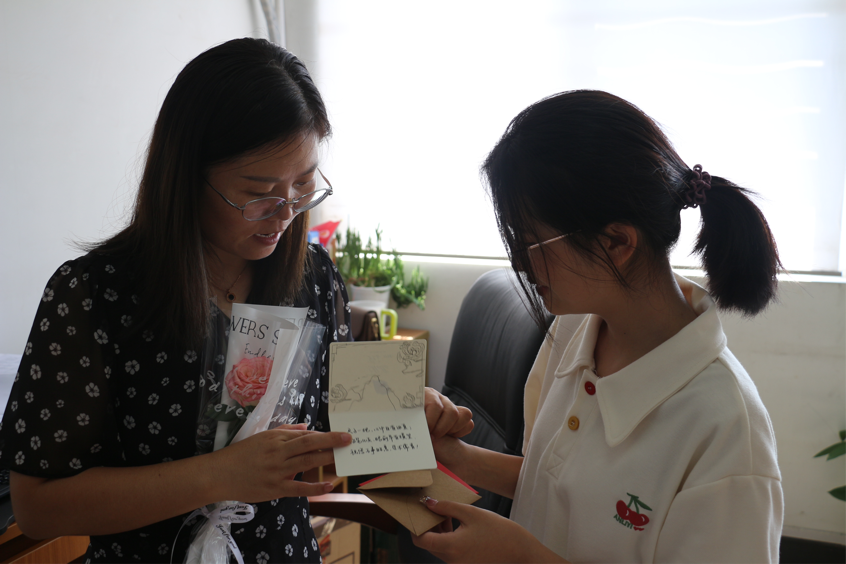 学生代表给老师送花与贺卡现场