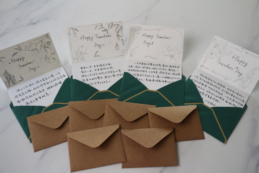 活动分为书写祝福语,鲜花赠礼和祝福传递三个环节。同学们运用所学的知识,以数学语言表达心中对老师的感谢与祝福。“我们像标量,只有大小,没有方向,您帮助我们寻找梦想,有了方向,成为向量,祝您在新的一年里,健康平安,万事如意!”“‘成功=您的教导+我们的努力。’您把公式填了一半给我们,我们也会出色地完成另一半!横式竖式,算不尽老师的爱;字里行间塞不下老师的情。老师,祝您教师节快乐!”字字句句都充满了同学们对老师浓浓的感恩与祝福。同学们将每一朵绚烂的鲜花细心呵护,与富有数学韵味的贺卡一同献给敬爱的老师。同学们真挚而郑重。老师们接过贺卡与鲜花,满是欣慰与喜悦,此刻,祝福完成了传递。
