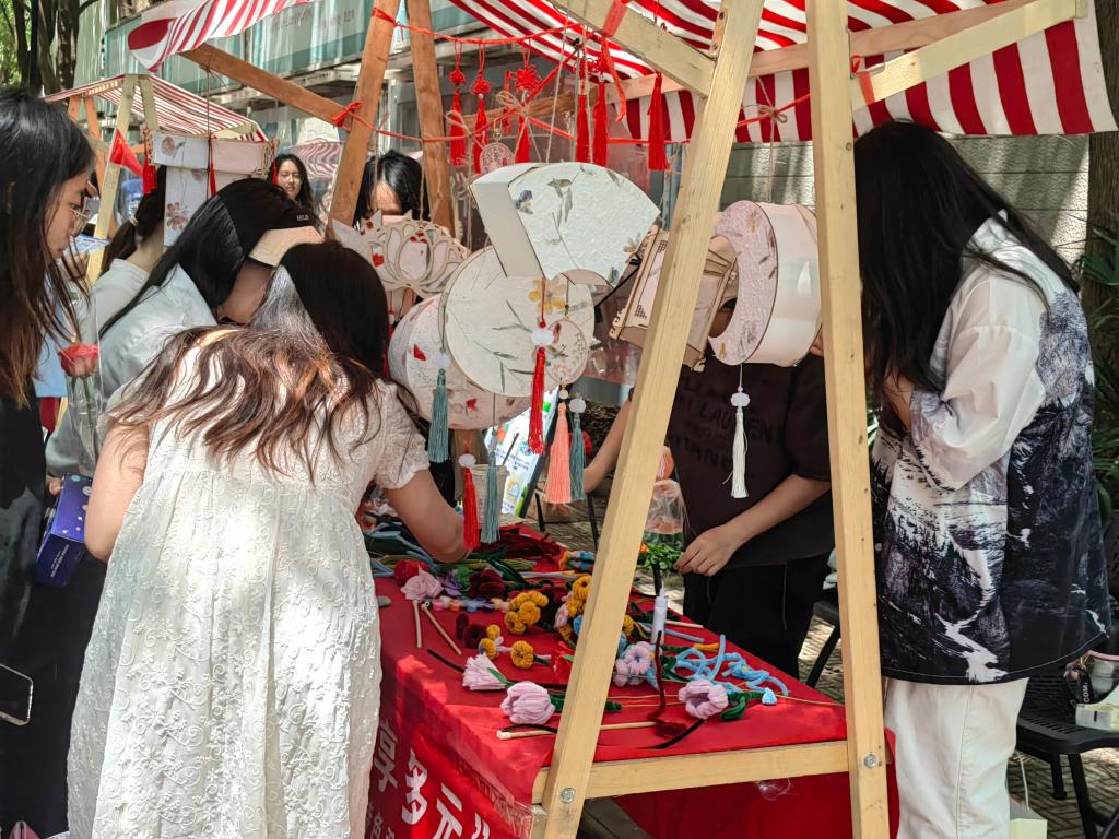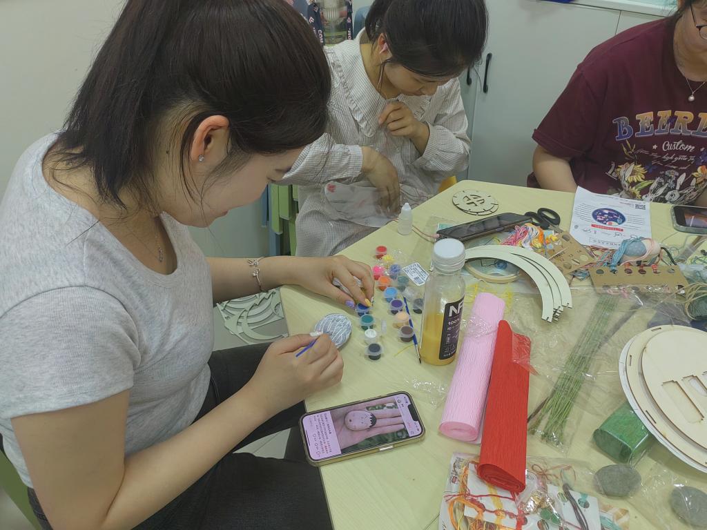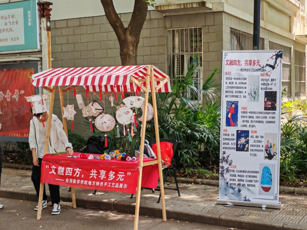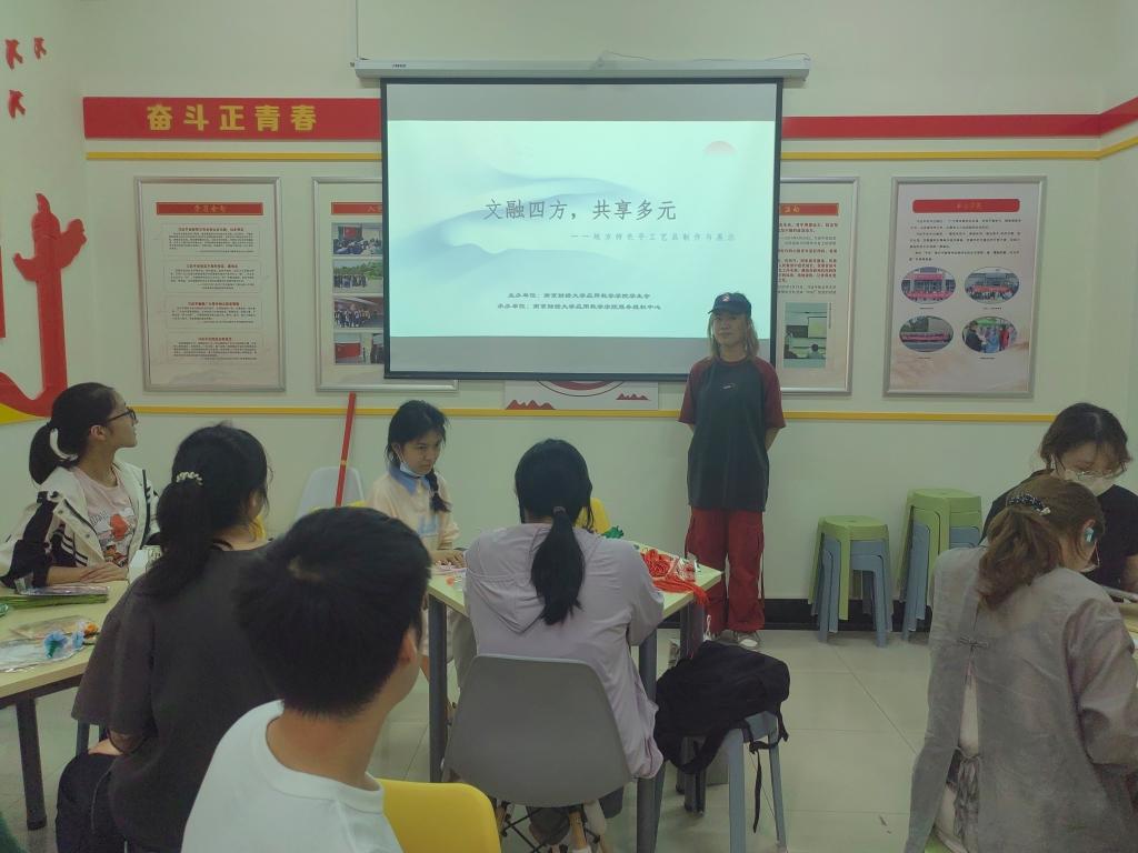 在仙林校区七号宿管站“纽扣空间”党建联盟工作站和中苑“一站式”学生社区开展地方特色手工艺品制作和展示活动。