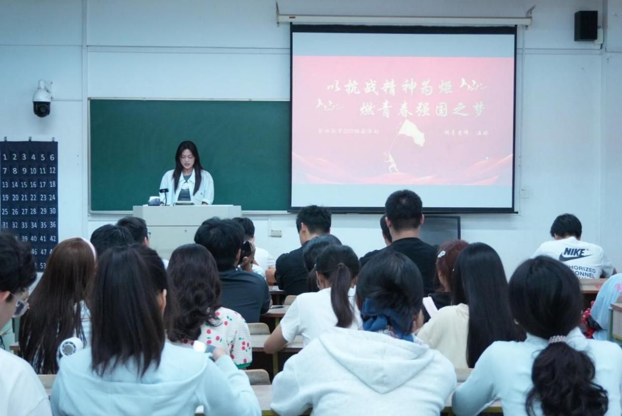 信念引领,厚植爱国情怀:各班围绕“铭记抗战历史,传承红色基因”开设专题思政课。辅导员温娇老师以弘扬爱国主义精神为核心,系统梳理从“九一八事变”到“七七事变”,从淞沪会战到百团大战等重要历史节点,引导学生树立正确的历史观,深入理解抗战精神的时代内涵与现实意义。