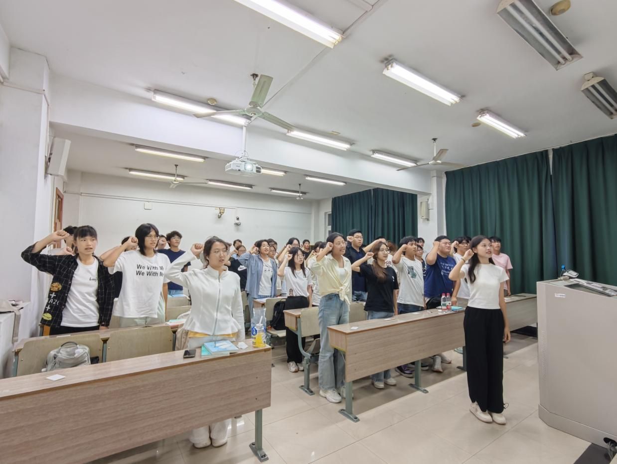 形式创新,深化精神认同:为增强教育实效,各班级积极创新班会形式。数学2501班以“铭记历史守初心,薪火相传向未来”为主线,设计了“历史脉络梳理”“观影深思”“快问快答”“承诺分享”和“集体宣誓”等环节,增强互动性与仪式感;金数2501班通过观看《我们在纪念什么》视频、开展“历史拼拼乐”活动,深入解读抗战精神内涵,引发学生对历史记忆的深层思考;金数2502班则以震撼视频引入,组织学生分享英雄事迹感悟,书写并宣读“强国青年誓言”,进一步强化对抗战精神的认知与情感认同。