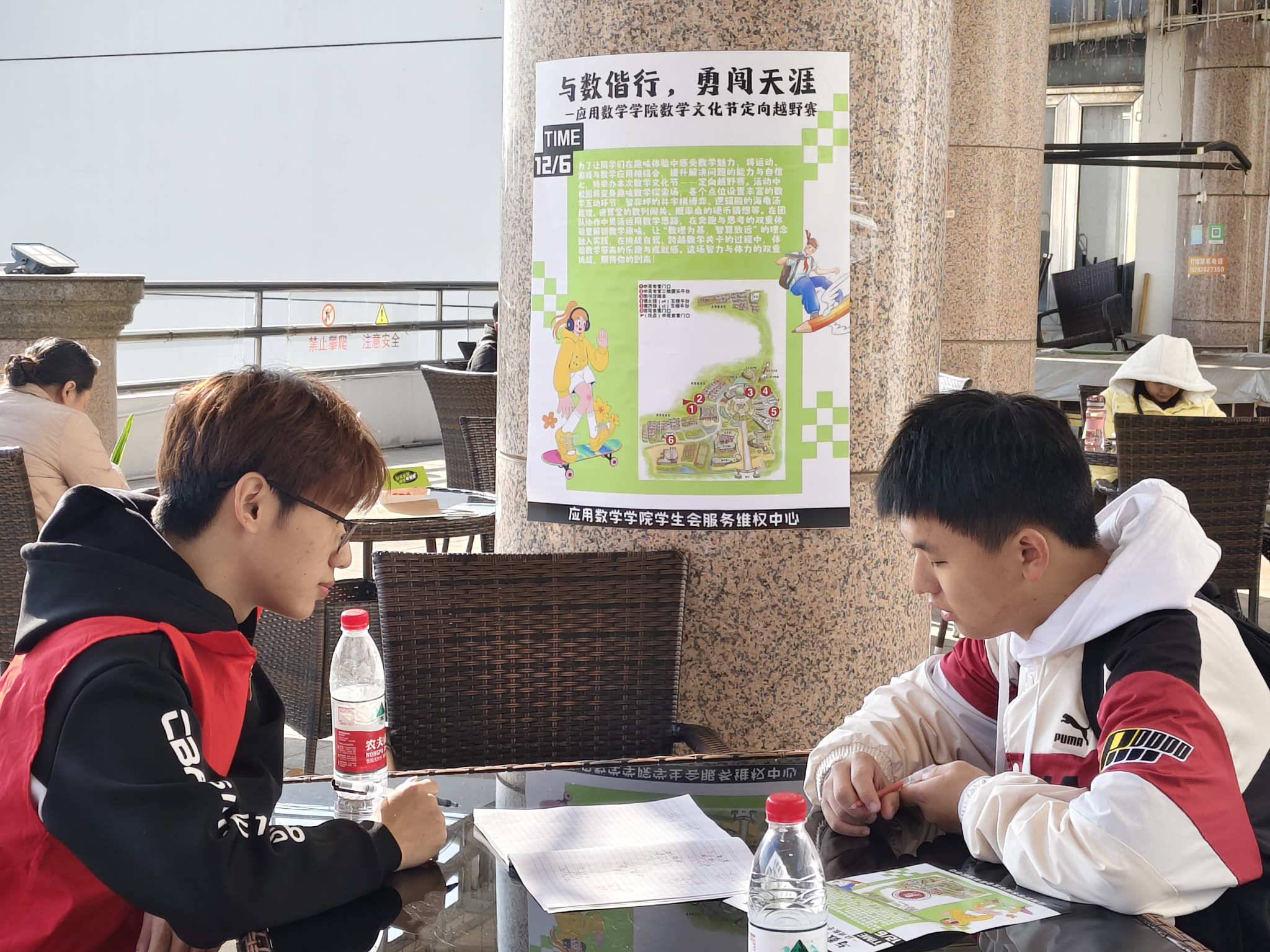 活动中,同学们热情高涨,团结协作,灵活运用数学思维破解关卡,在奔跑与解题中展现出良好的团队精神与数学素养。从起点中苑食堂出发,历经重重挑战最终顺利到达终点。此活动不仅让大家充分锻炼了体能,更在动手实践中收获了破解难题的成就感,切实感受到了数学在生活中的灵活运用与独特乐趣。