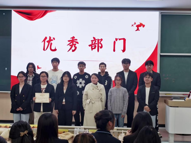 大会最后对表现突出的“优秀部门”“先进部长”及“先进干事”进行了表彰。社会实践部、宣传部、组织部荣获“优秀部门”;董昊卓、祖诗杨、徐瑞颖、刘亦伟、赵璠、杜汉秋、贺雨荷获评“先进部长”;陈忠鑫、刘崔佳丽 、刘依雯、王卓清、朱萌萌、李淑婷、骆文萍等17名同学获评“先进干事”。此次表彰不仅是对先进个人与集体的肯定,更激励着全体成员在未来的工作中保持热情,再创佳绩。