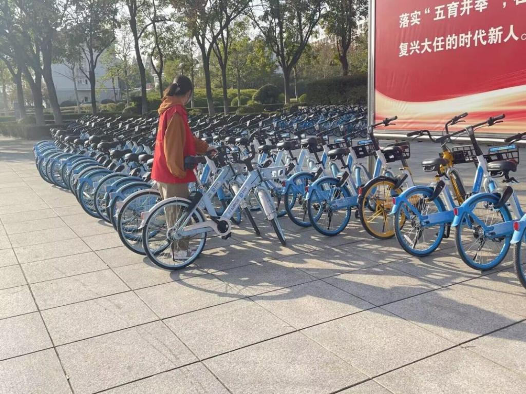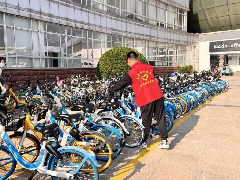 活动过程中,志愿者们分头行动,校园内都是志愿者们忙碌的身影。他们对倒地的共享单车就地扶正,并将随意停放的共享单车移到指定位置并排放整齐;见到需要停车的同学就引导他们将共享单车停入指定位置,并现场宣传引导同学们自觉规范停放自行车。志愿者们用实际行动向师生们宣传文明骑行、文明停车的理念和建设美丽校园人人有责的意识,同时充分体现了“奉献、友爱、互助、进步”的志愿精神。