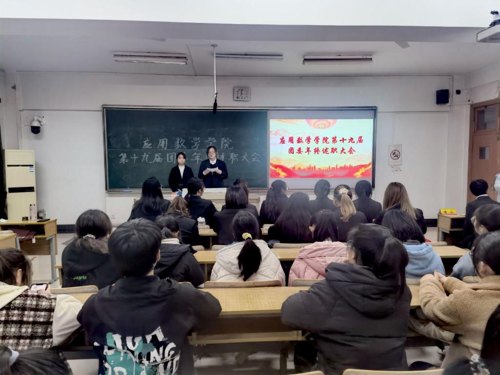 团委年终述职大会,大会由青志部谭文慧、宋佳主持,院团委全体成员参加。