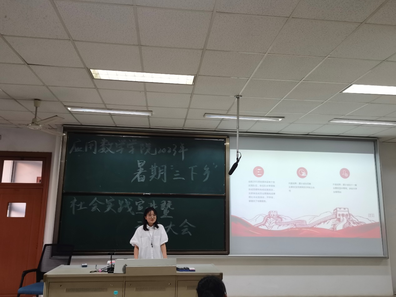 数学2201班吴文静同学为同学们介绍本次暑期社会实践的意义、活动内容、时间安排以及注意事项,着重介绍了团队通讯员工作的具体内容。她向同学们详细讲解了活动附件与活动展示所需要的内容,帮助同学们更好地了解暑期社会实践各环节开展的具体要求。