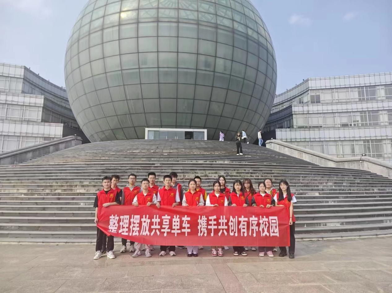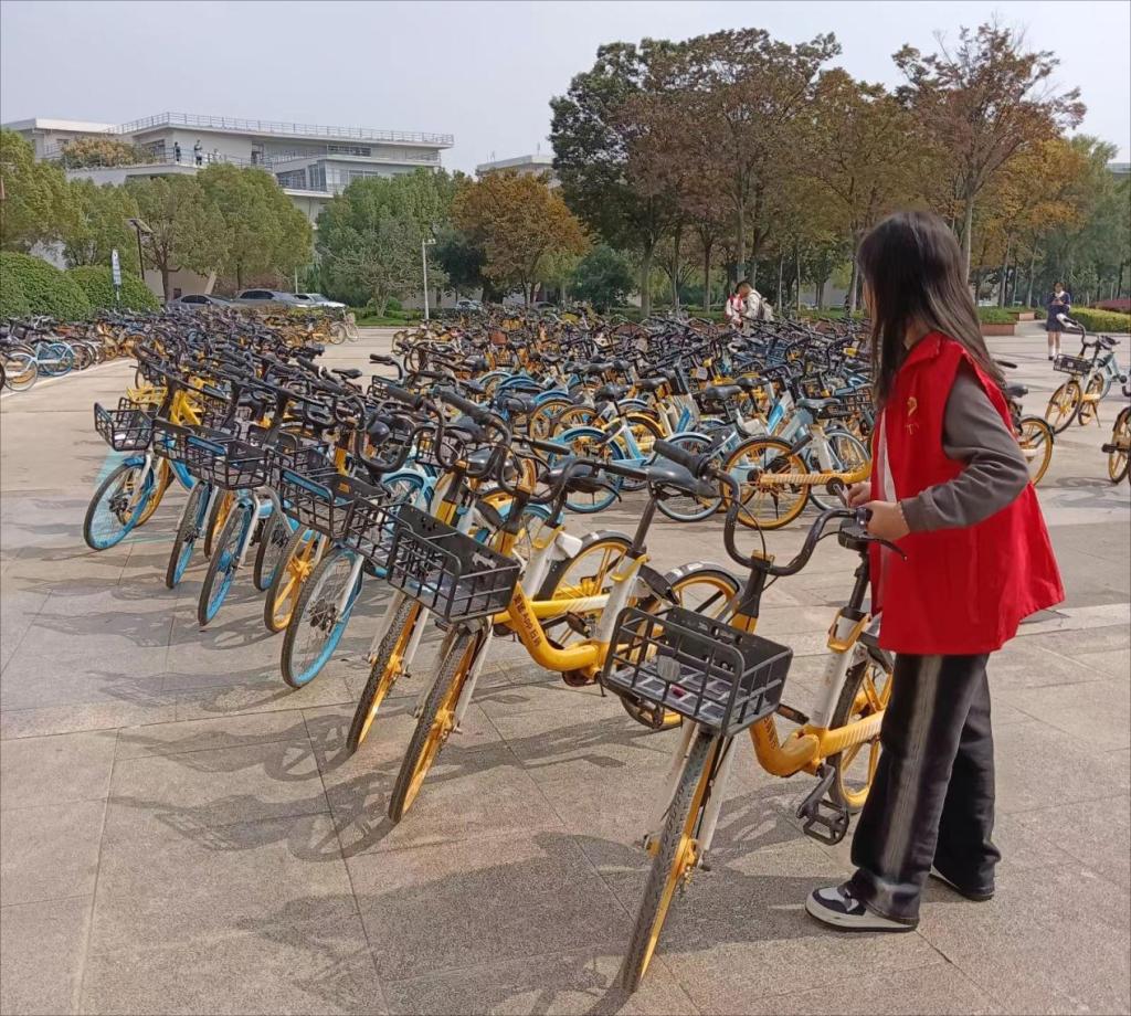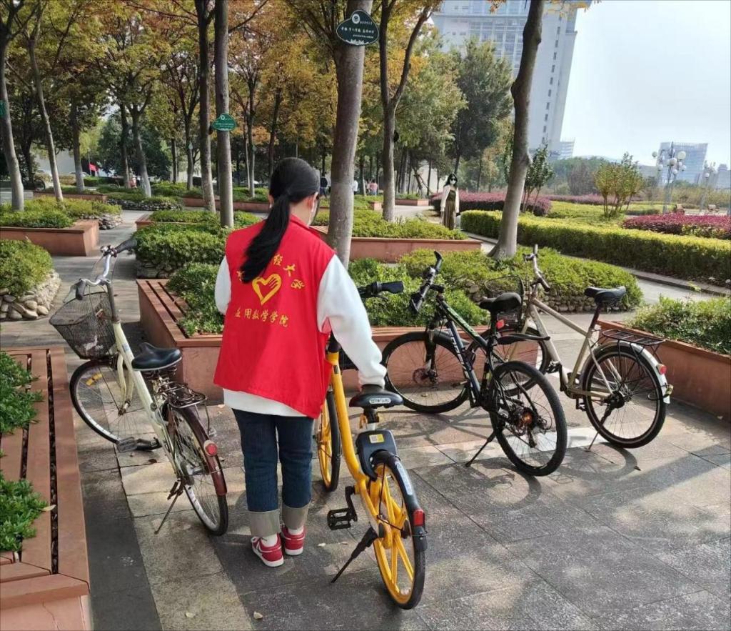 开展“整理摆放共享单车,携手共创有序校园”志愿活动