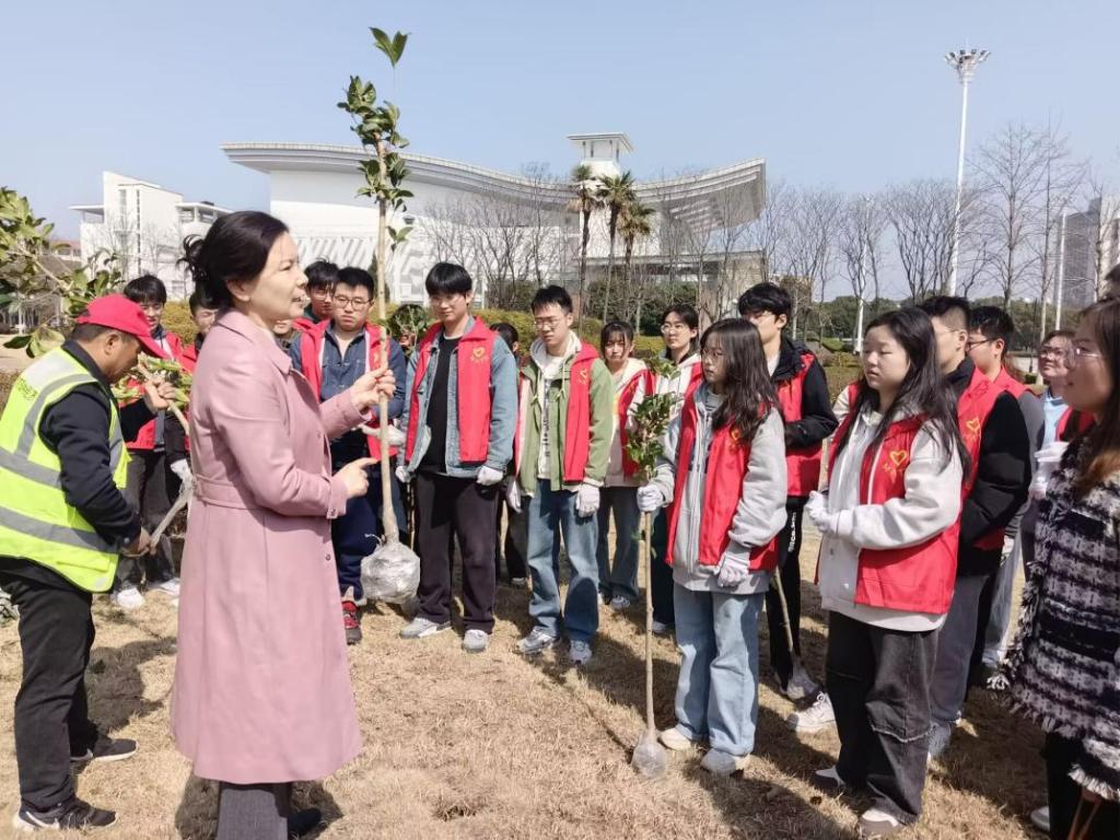 活动分为讲解说明和实际操作两个环节。志愿者们领取好劳动工具后,后勤基建处负责老师向同学们详细讲解了桂花树苗的种植流程,现场示范了操作细节和注意事项。