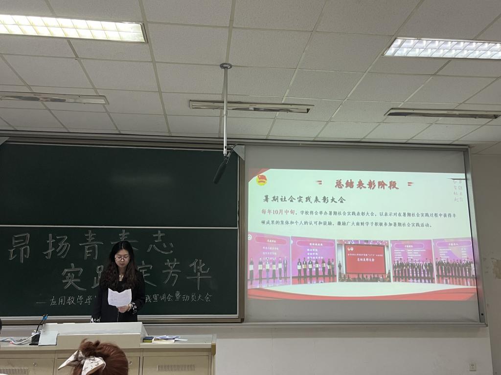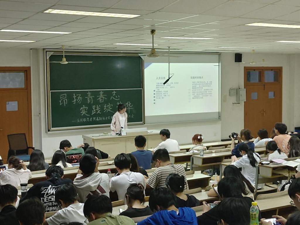 于5月13日晚在仙林校区博远楼103教室召开2024年暑期社会实践宣讲暨动员大会。校大学生科学技术协会社会实践部部长赵玉杰、校团委青年媒体中心编辑审核部部长李媛、优秀团队代表朱美嘉、陈小蕊及香港赛马会赔率
