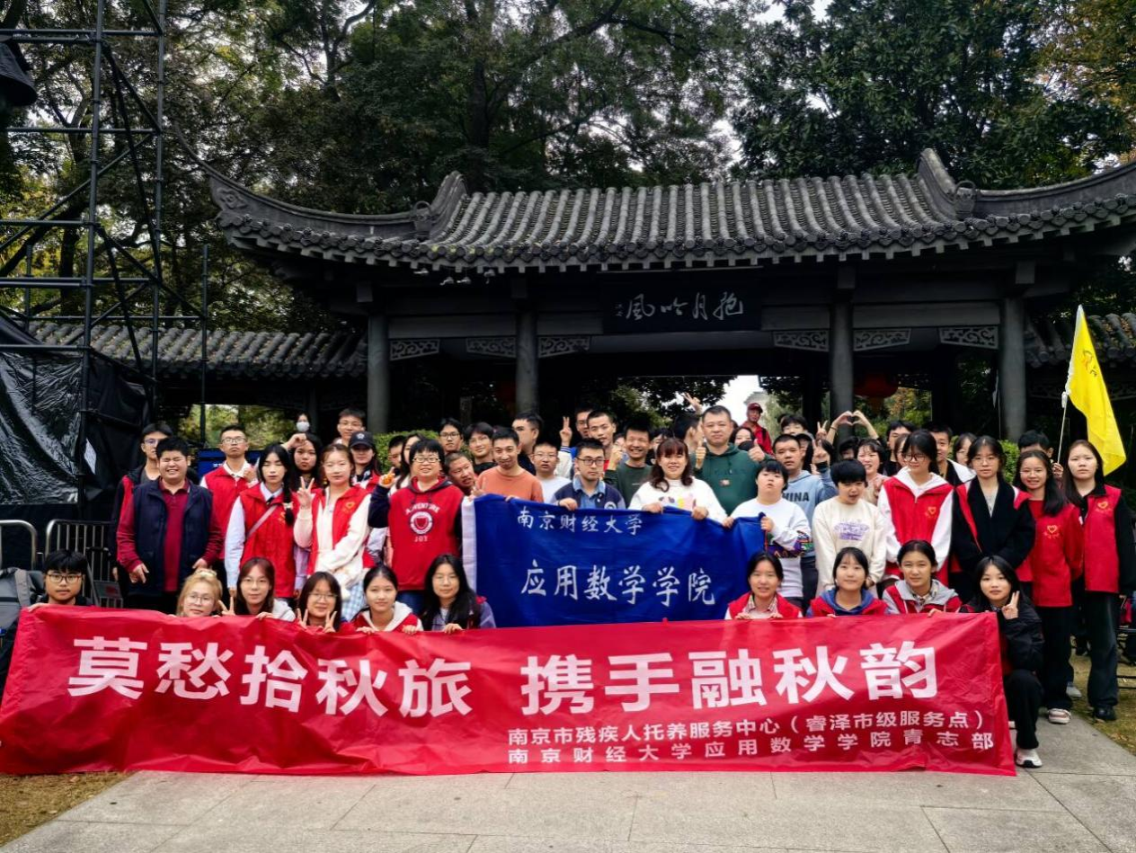 团委青志部依托“‘数’说青春,‘益’路同行志愿服务”项目组织44名志愿者前往南京市建邺区莫愁湖公园联合睿泽障碍人士服务中心开展“莫愁拾秋旅,携手融秋韵”志愿服务活动。
