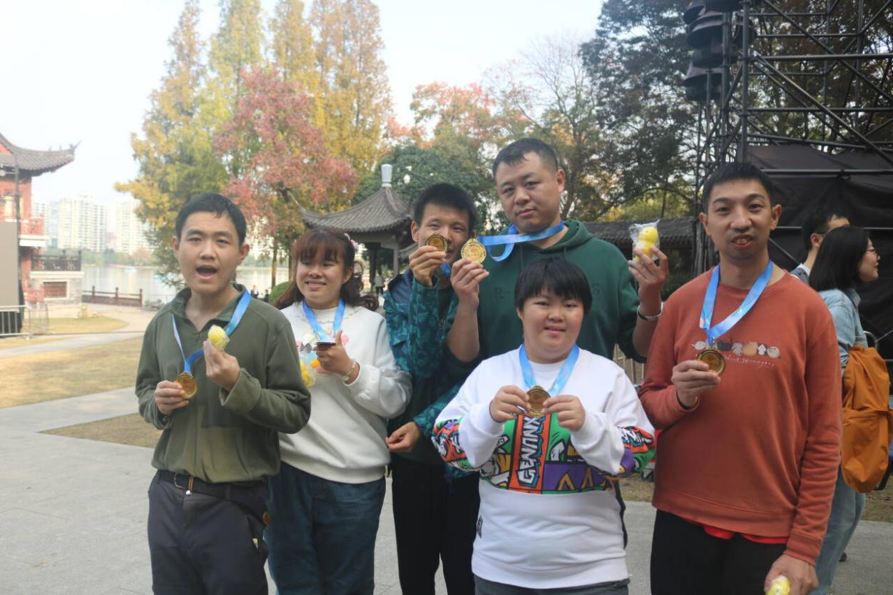 手拉手心连心,寻找秋日美景。活动初始,志愿者与障碍人士手牵着手,互相表达着温暖与善意。在本次活动的第一个小游戏——寻找趣味风景打卡点中,志愿者们携手障碍人士,踩着金黄的树叶,迎着湖面的轻风,一路上欢声笑语,渐渐地打开了双方的心扉。按下拍照键,完成打卡任务的同时,定格一张张幸福的笑脸。