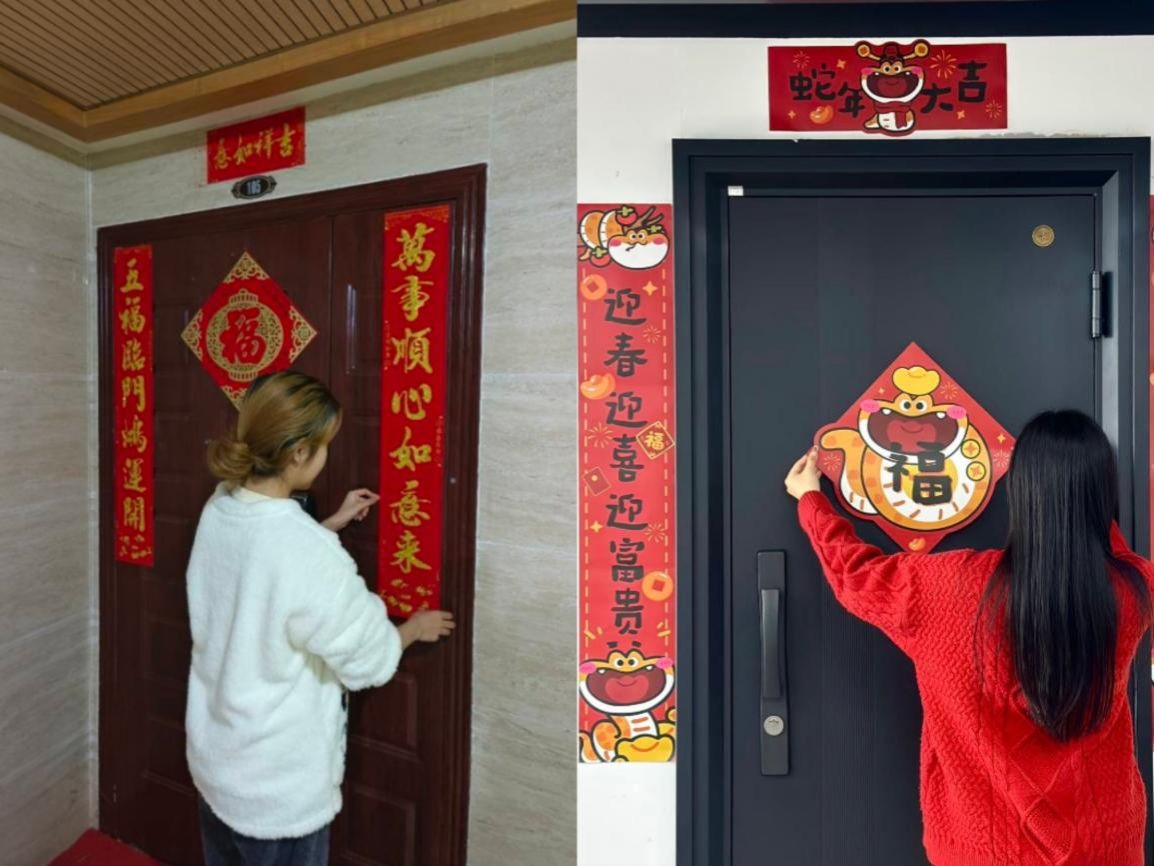 组织全体同学开展“福映门楣雪清尘,饺香四溢迎新春”实践活动。同学们纷纷行动起来,有的在家门前贴上春联福字和窗花,传承春节文化的独特魅力;有的为家人清尘除雪,在干净祥和中迎接祥蛇年的到来,并以除旧布新的姿态,许愿新的一年里能有新的收获与成长;还有的早早地与亲朋好友团聚一堂,围坐一起,共享一碗热气腾腾的饺子或馄饨,那份熟悉的味道中,不仅蕴含着家的温暖,更传递着彼此间深深的关怀与久别重逢的喜悦……在对蛇年新春的热切期盼中,年味愈渐浓厚。