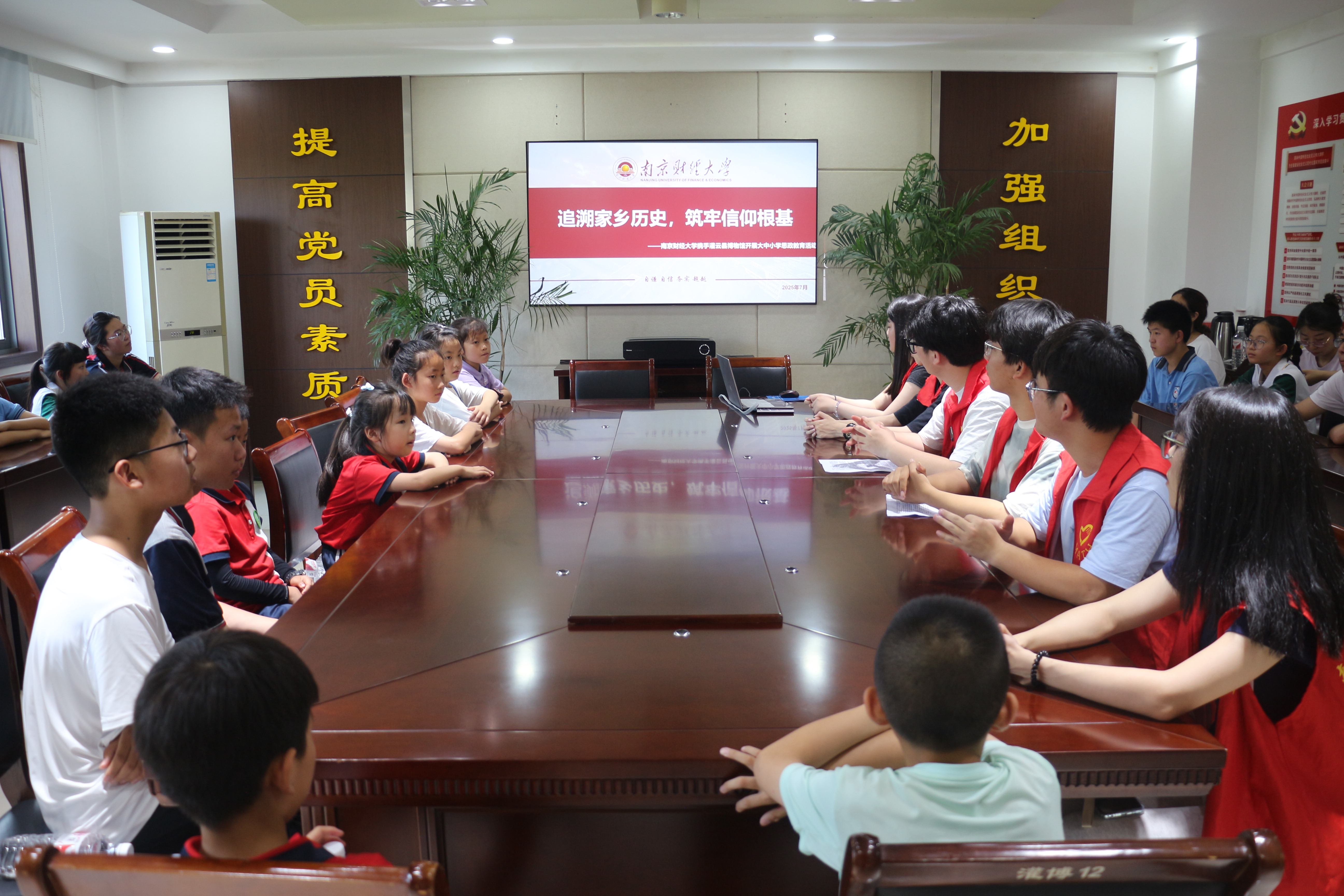 活动尾声,大中小学生共同在横幅前合影留念。这场跨越年龄的思政课,以历史为锚点,以专业为帆桨,让信仰根基在触摸家乡脉搏的过程中愈发坚实。