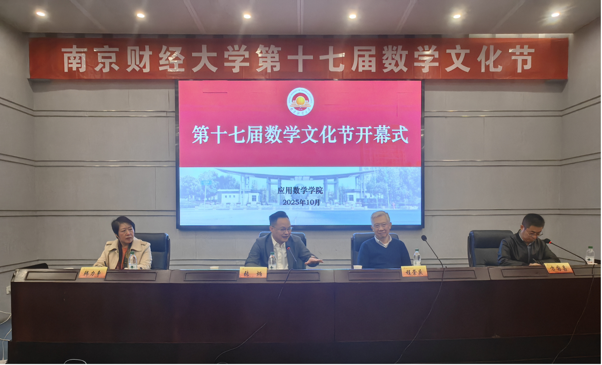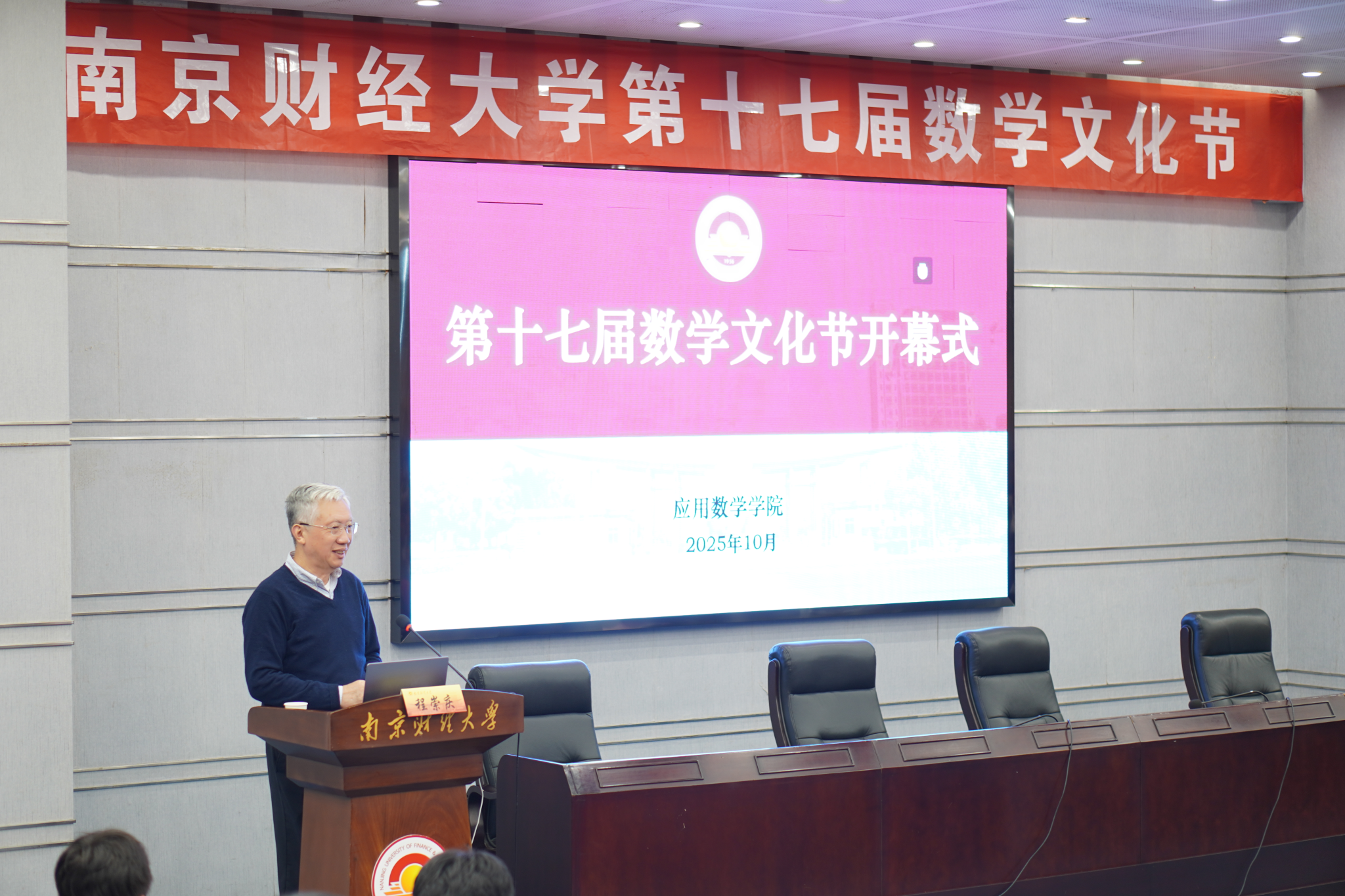 副校长张炳讲话。他强调高等数学教育不仅是知识传授,更是素质培育。他认为兴趣和热爱是探索的不竭动力,只有真正走进和爱上数学,才能潜移默化地提升数学素养。他指出扎实的数学素养是培养“厚基础、强能力、高素质”复合应用型人才的核心特质。他期待全体师生珍惜机会,主动参与,积极探索,在思维碰撞中激发灵感,在实践中锤炼本领,走进数学、读懂数学、爱上数学。最后,张炳副校长宣布第十七届数学文化节开幕。