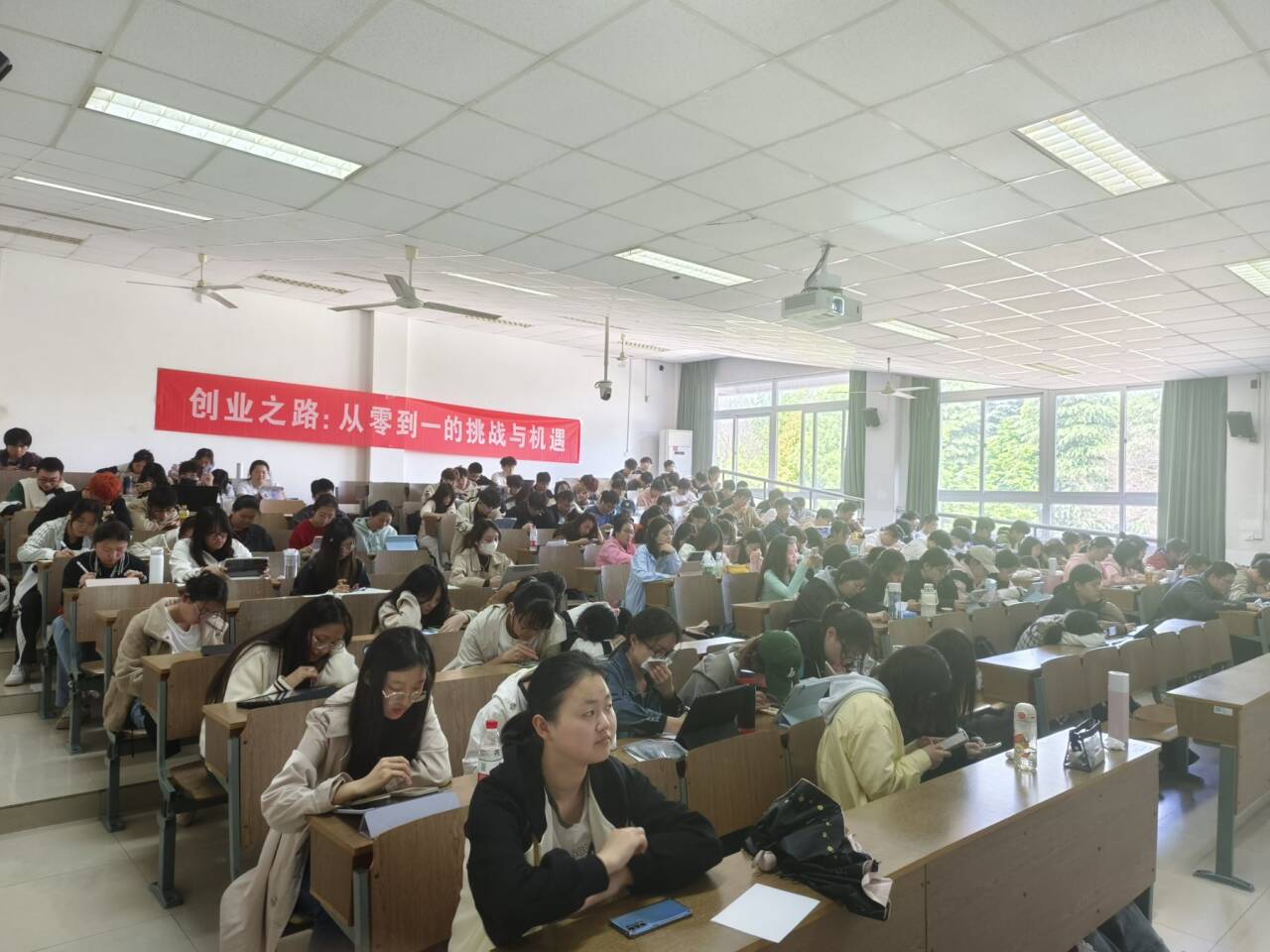 马五代总经理从创业准备、创业补贴政策、常见创业问题及创业避险策略等四个方面展开讲座。首先,他指出创业需做好6项准备工作:是否适合创业、创建企业的构思、选择企业法律形态、筹集创业启动资金、制定利润计划、设立完整企业。他以兄弟连企业发展为例,展示创业的艰辛,让大家明白创业必将面对诸多挑战。接着,他详细讲解了创业补贴政策,如政策扶持、资金补贴、税收优惠等多项措施,指出各类大学生创业补贴政策为大学生提供了前所未有的创业机会,激发了同学们创业的积极性。同时,他列举出了常见的创业问题,并且从不同情况为学生们提出创业建议,以现实中“蜜雪冰城”和“雪糕刺客”为例,分析真实的创业类型。最后,他分享了创业避险策略,为同学们创业之路指明坑洼,告诫大家机遇和挑战总是并存,要善于抓住机遇,勇于面对挑战,并期待同学们未来的事业都能一路长虹。
