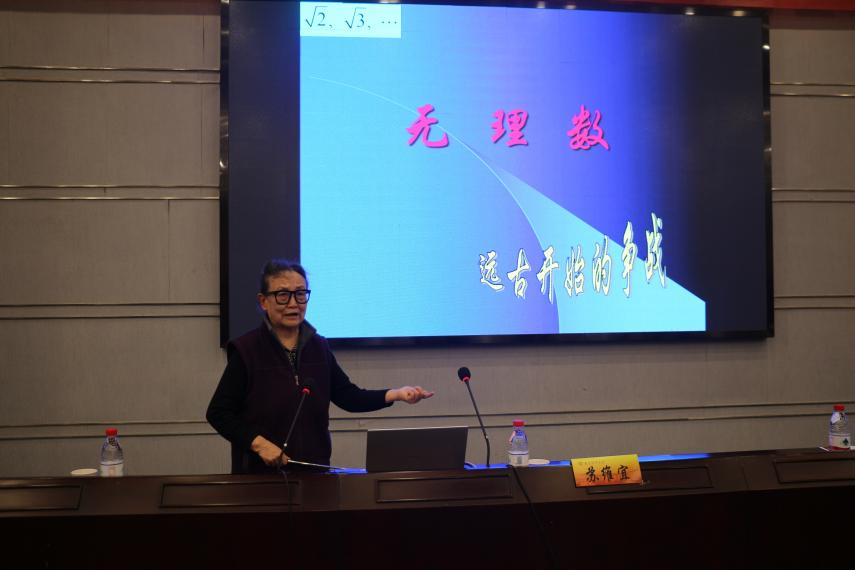 开幕式结束后,南京大学教授、博士生导师苏维宜作了题为“数学科学的魅力”的讲座。她从有理数和无理数有多少“个”、微积分核心内容如何掌握两个问题进行展开。详细向同学介绍了定义和计算有理数和无理数的方法和步骤。从极限、微分、积分、函数等方面向同学们讲解了微积分学习的核心内容。她希望同学们要悟透概念、发现问题、创新思维,打下坚实基础,学会过硬本领,操练终生受益的真功夫。